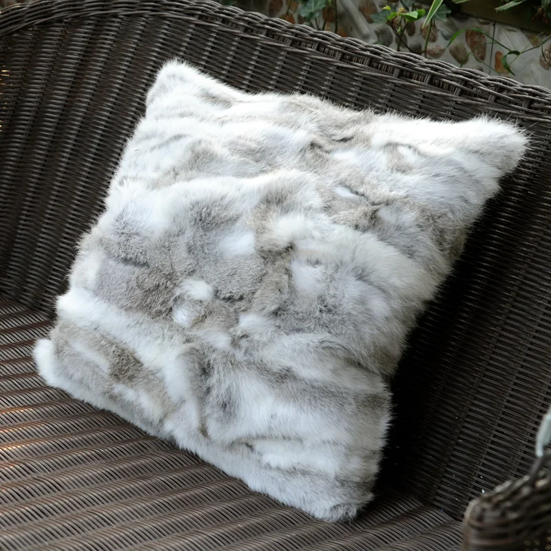 Бесплатная доставка, подушка из натурального кроличьего меха натурального цвета ручной работы, 45*45 см, квадратная подушка из одностороннего меха