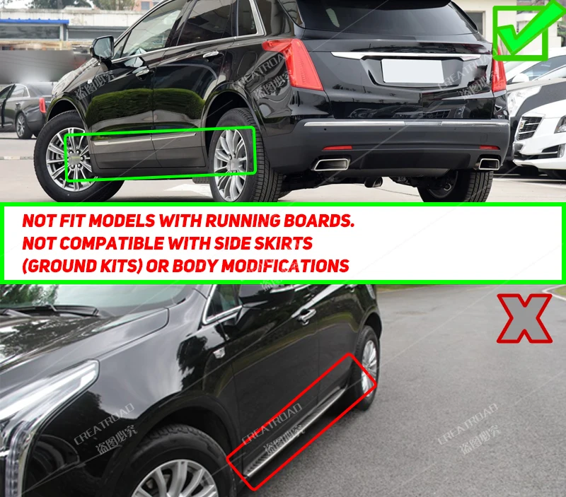 Подходит для Cadillac XT5 2016-2021Модели не подходят для бега.Не совместим с боковыми юбками (наземные комплекты) или модификациями тела