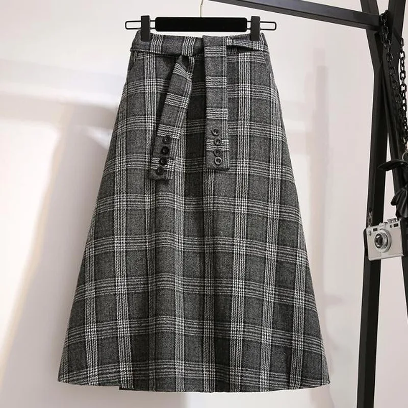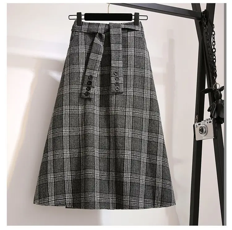 Юбка женская клетчатая до середины икры, приталенная мягкая винтажная верхняя одежда в стиле ампир, повседневная универсальная модная в Корейском стиле, большие размеры 3XL