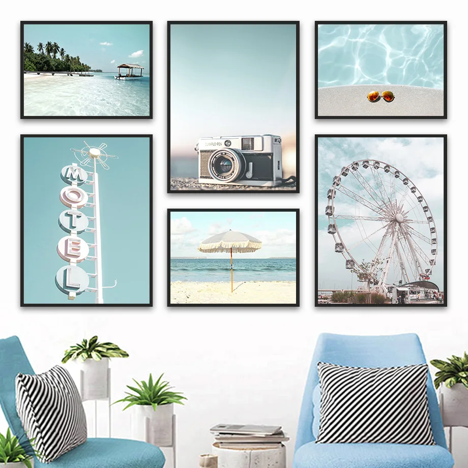 Настенная картина для пляжа, моря, пальмы, доска для серфинга, лодк...