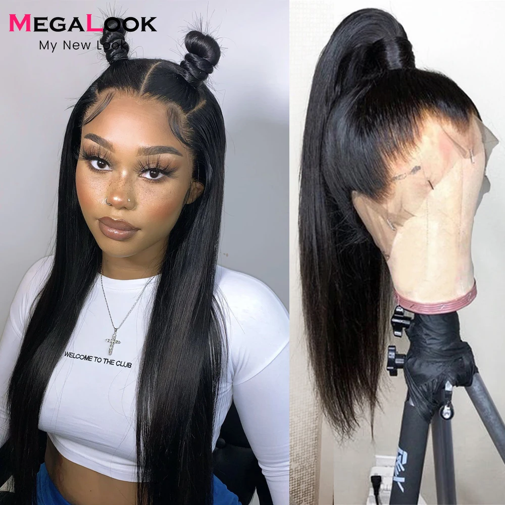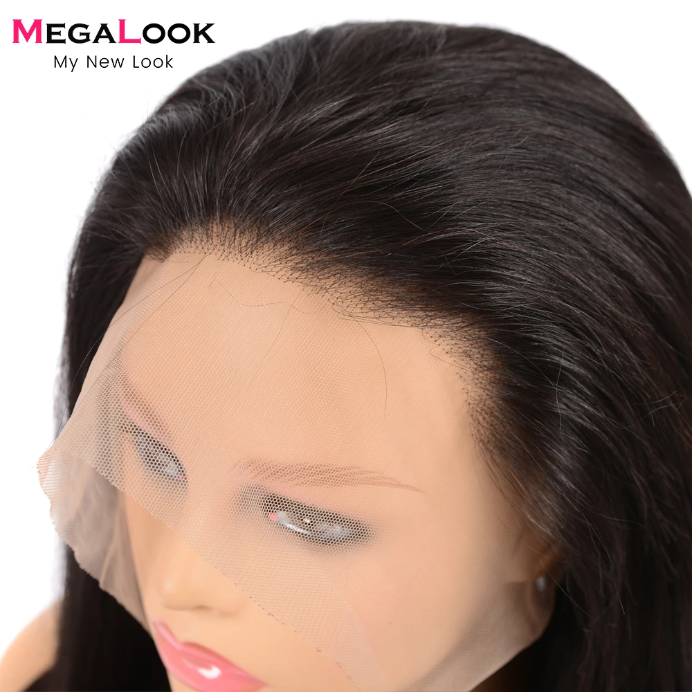 Парик с кружевом спереди для женщин Megalook Remy, бразильские прям...