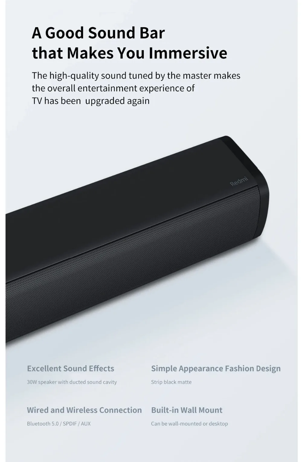 ● 30 Вт динамик с вентиляционной звуковой полости ● Поставляется с настенным креплением ● Стильный Простой дизайн ткани ● Поддерживает установку стен и сидений ● Проводное и беспроводное Простое подключение Bluetooth 5,0/SPDIF / AUX