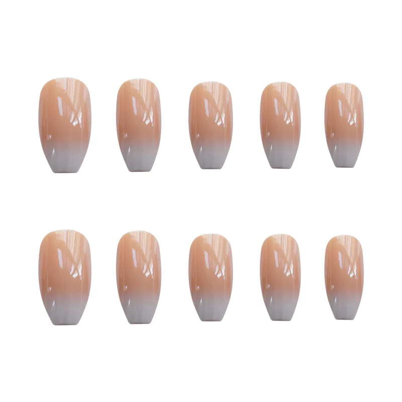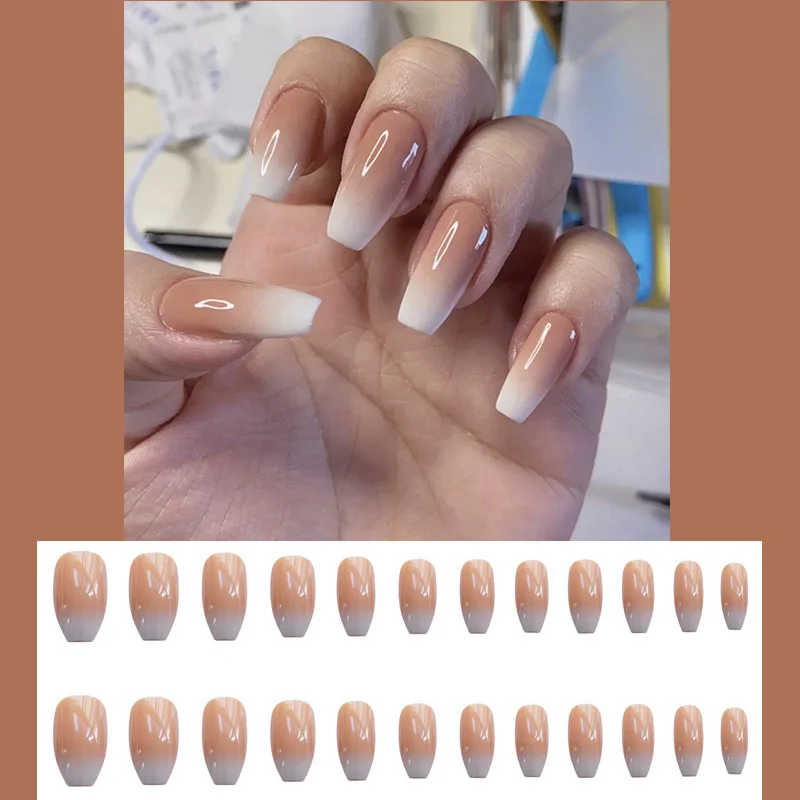 Накладные ногти, 24 шт., глянцевые, с эффектом омбре, французские н...