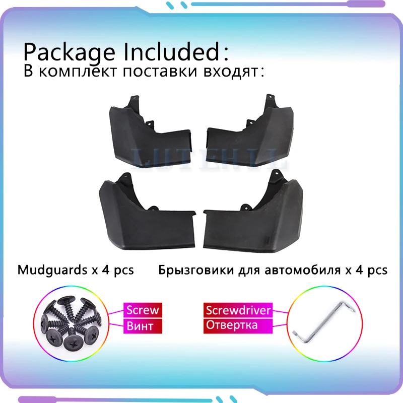 4 x брызговика, 1 x отвертка, сумка для фиксации винтов