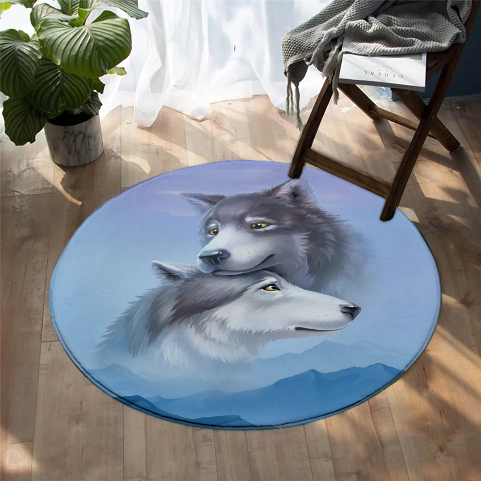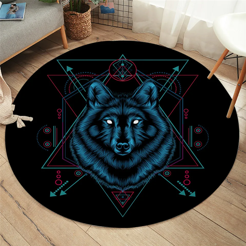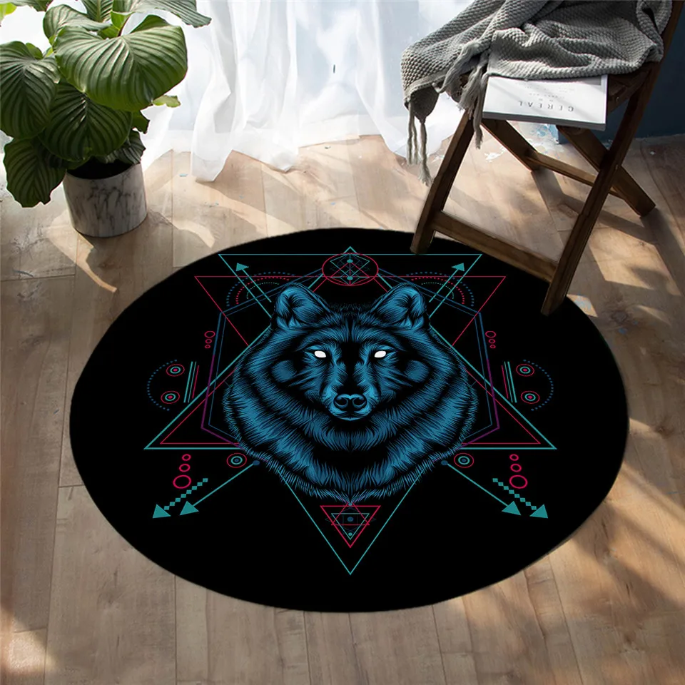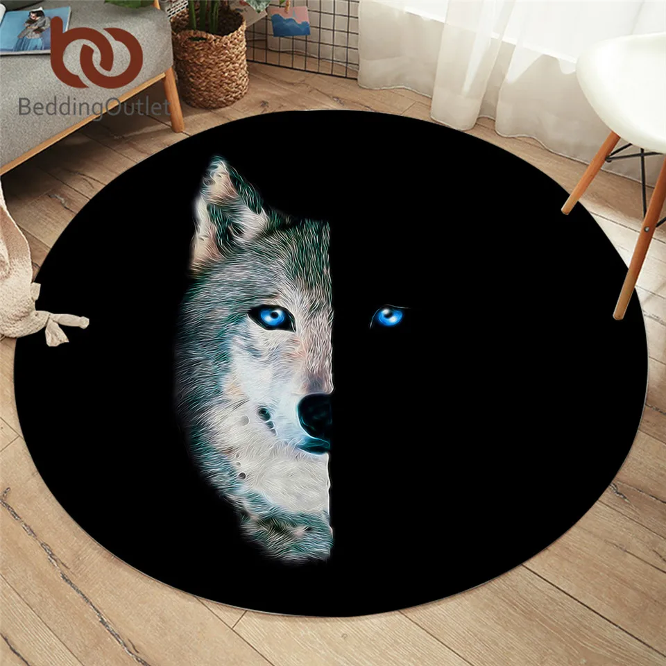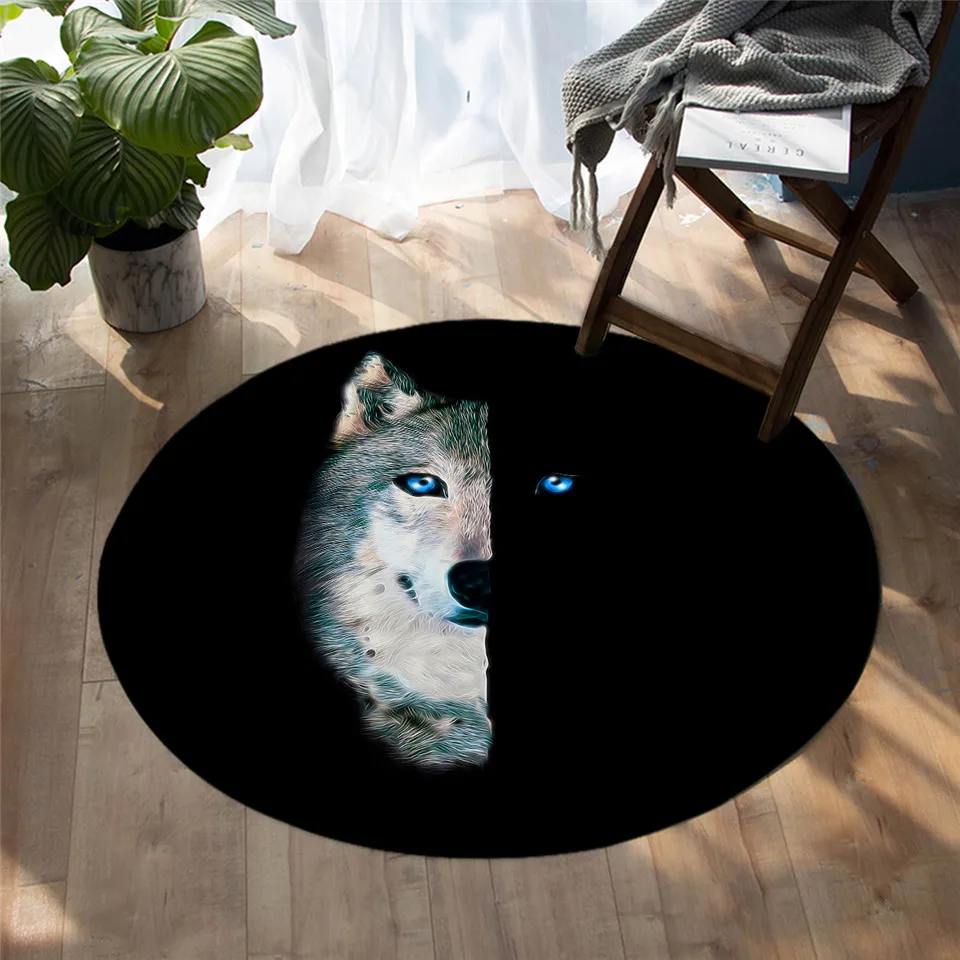 Напольный коврик BeddingOutlet с изображением волка, круглый ковер с изображением животных, коврик черного цвета голубые глаза, половина лица, для гостиной, 100 см