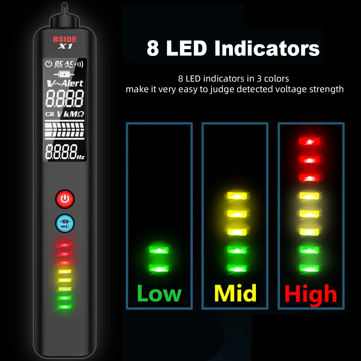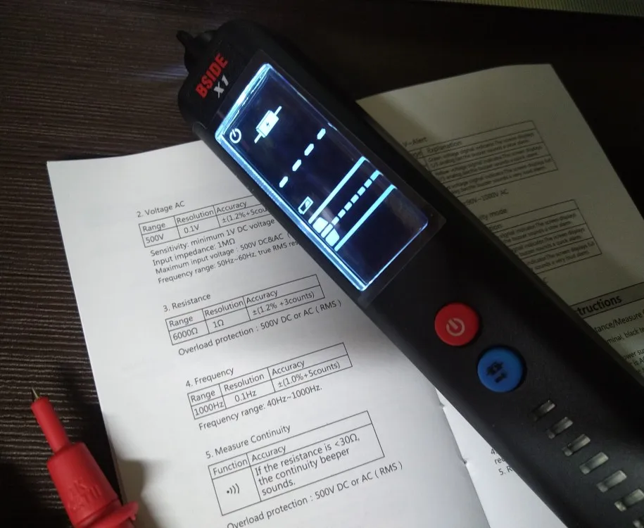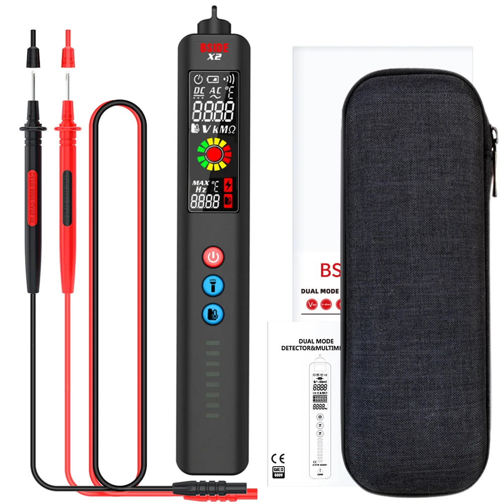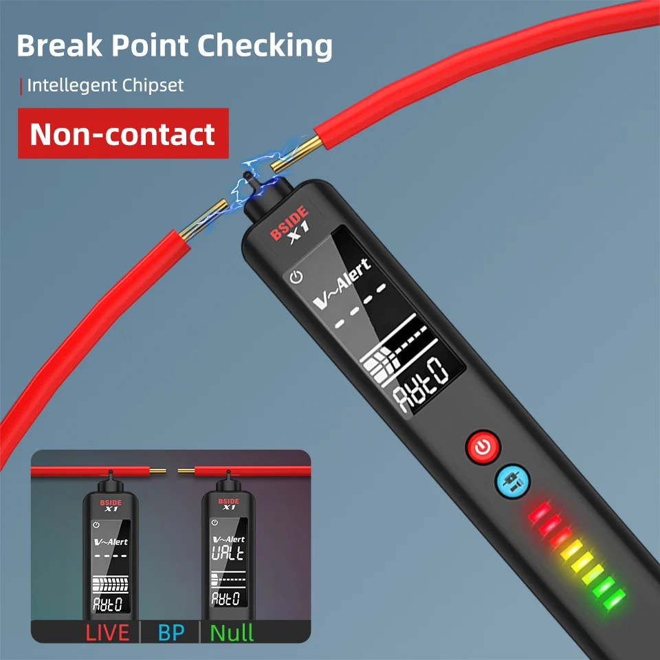 Детектор напряжения BSIDE X1 с 3-линейным ЖК-дисплеем, регулируемая чувствительность, двухдиапазонный датчик переменного напряжения, тестер напряжения