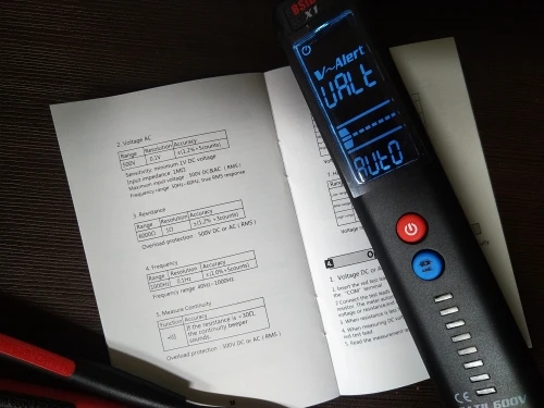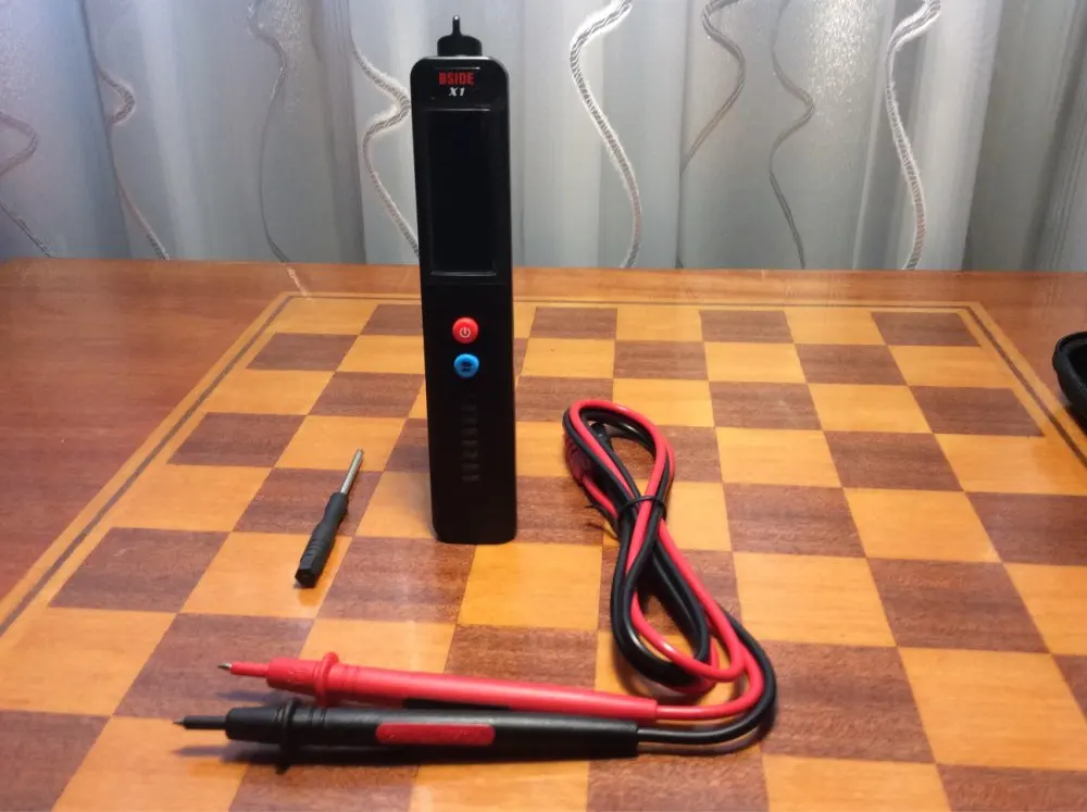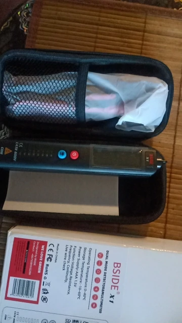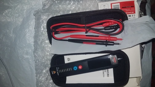 Отличный приборчик. Миниатюрный, помещается на ладошке, аккуратно сделан. Футляр - хороший, удобный, также аккуратно сделан. Щупы - мягкие, хотя и не силиконовые, имеют съёмные защитные колпачки на наконечниках. Что касается работы. "Фазу" и "ноль" определяет. Измеряет напряжение в сети и простых батареек. Правда, при смене полярности имеются расхождения в измерении напряжения батарейки на 0,05 В. Не считаю это критичным. Как тестер для поиска скрытой проводки не годится. Показывает наличие поля с большими допусками. Подойдёт как детектор наличия поля и фазы. В целом, хорош как индикатор в домашних условиях для людей, не владеющих знаниями по электричеству и электронике. Воткнул щупы в прибор и измеряй всё подряд - от напряжения батареек и до напряжения сети. И не нужно думать, куда переключить переключатель или воткнуть шупы на приборе. При этом он очень компактен. Питается от 2-ух элементов типоразмера ААА (в комплекте их нет). Заказ исполнен за 5 дней, привёз в квартиру курьер СКЭ.