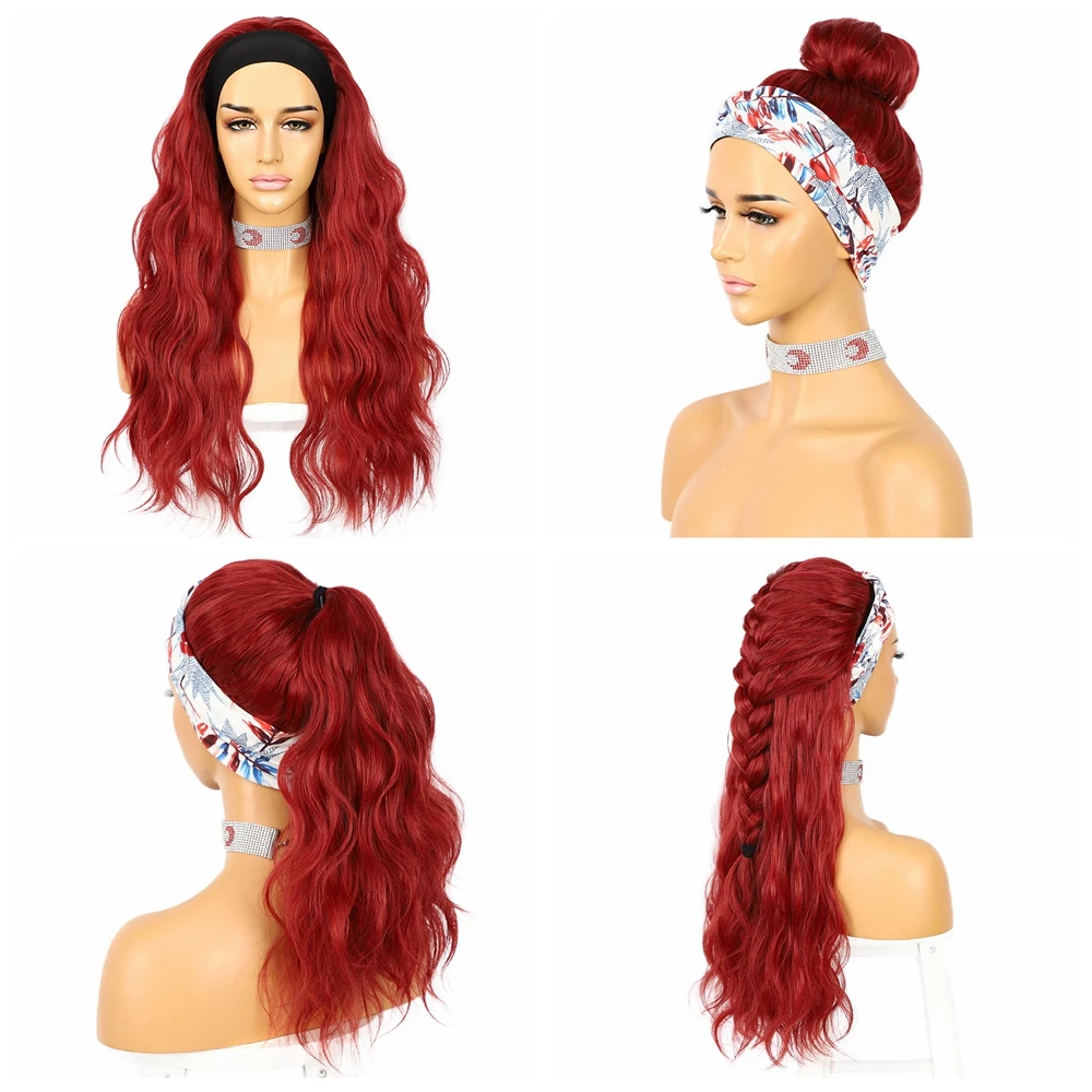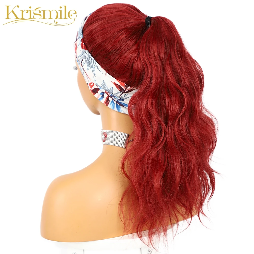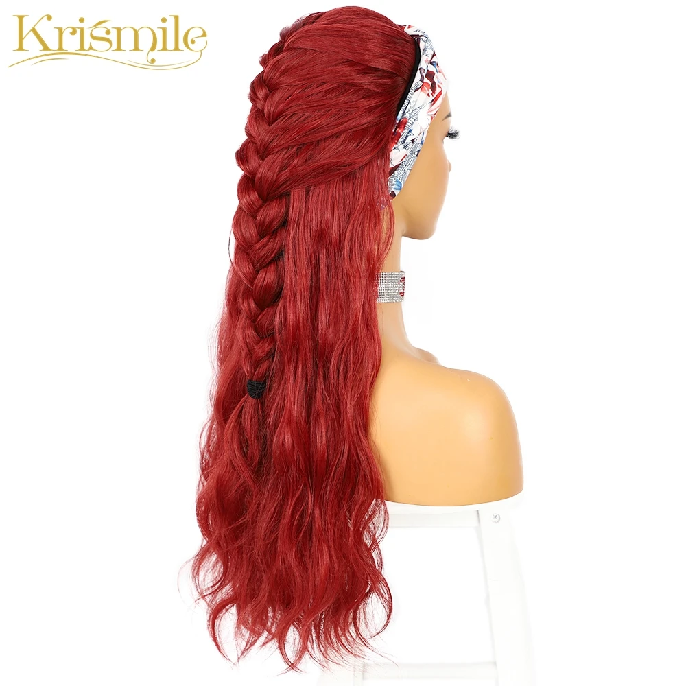 Krismile волнистые красные парик с головной повязкой с длинным ежедневные вечерние путешествия праздники не гель бесклеевой парик для Для женщин Make Up с 2 повязки без