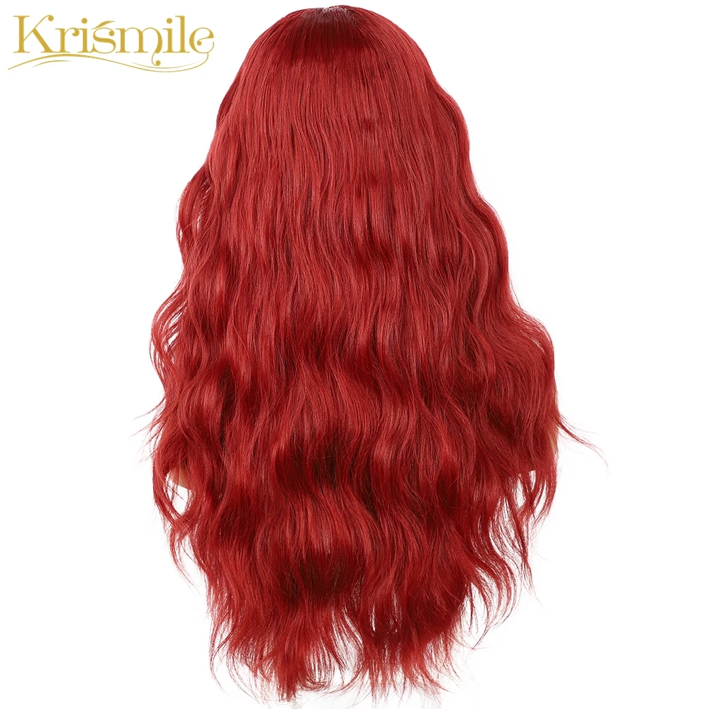 Красный парик с головной повязкой Krismile, длинные, повседневные, вечерние, праздничные, без геля, без клея, парик для женщин, макияж с 2 свободными полосками