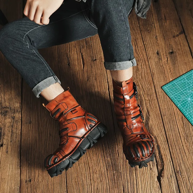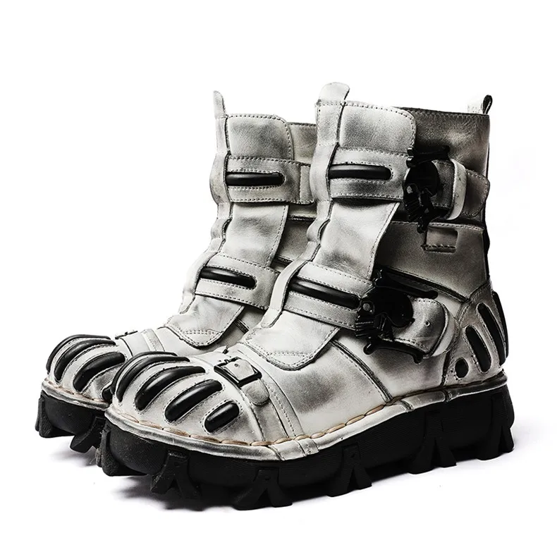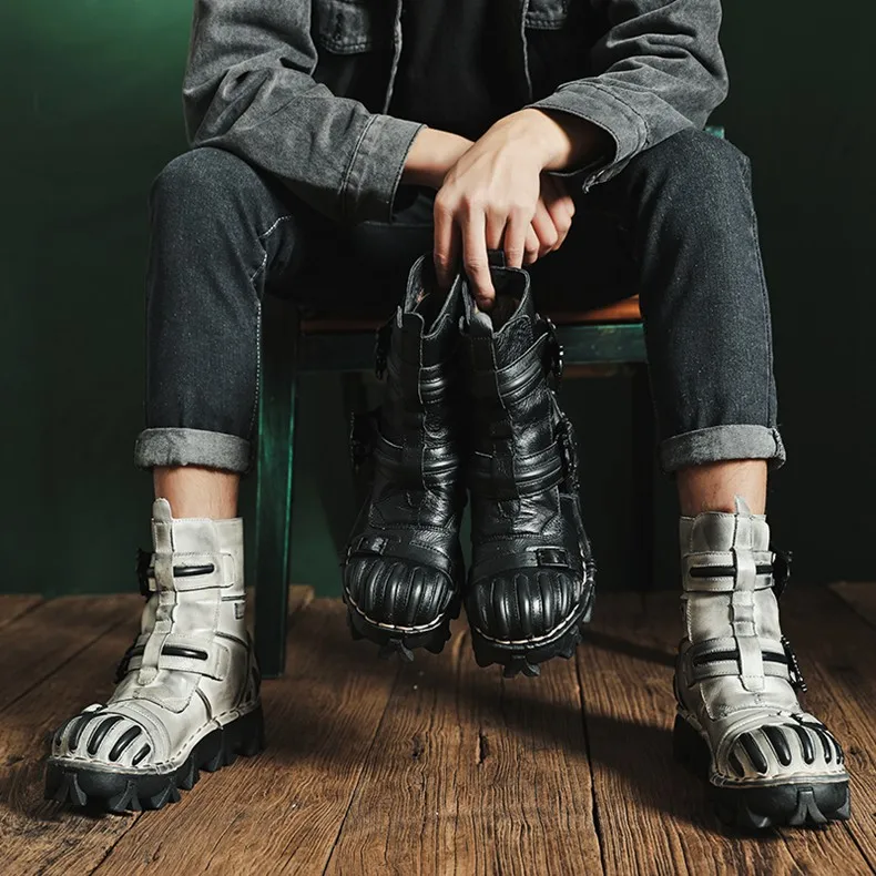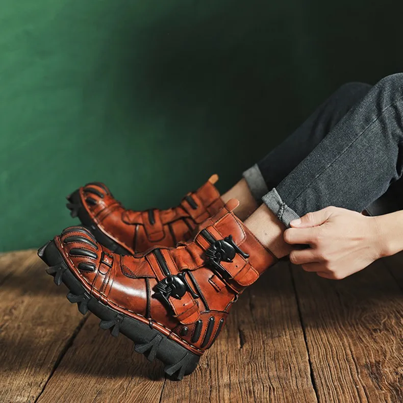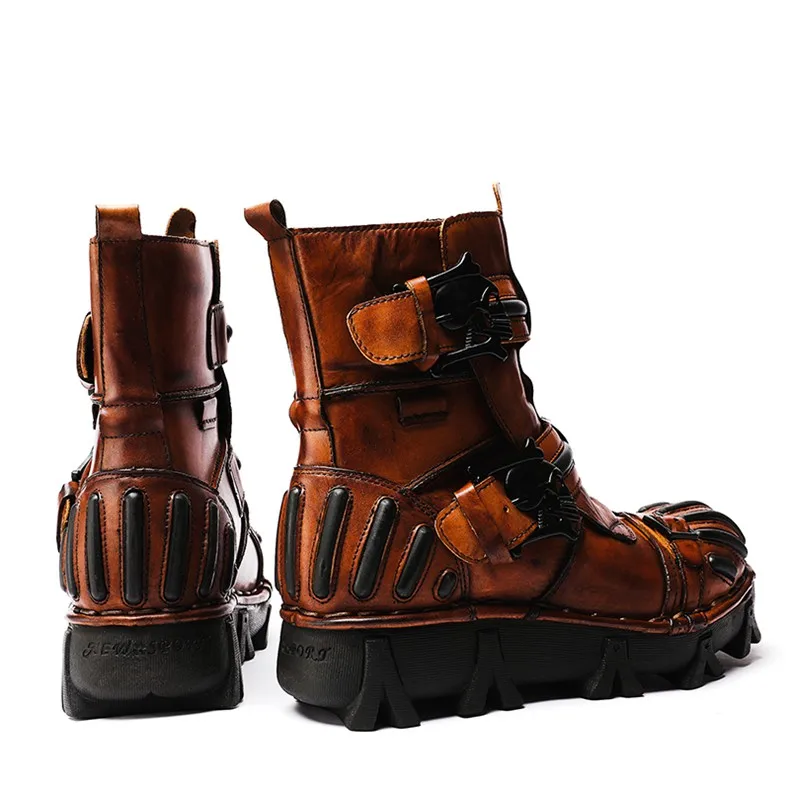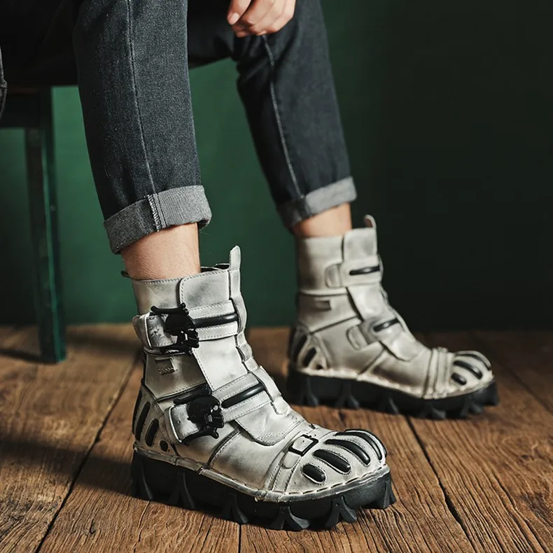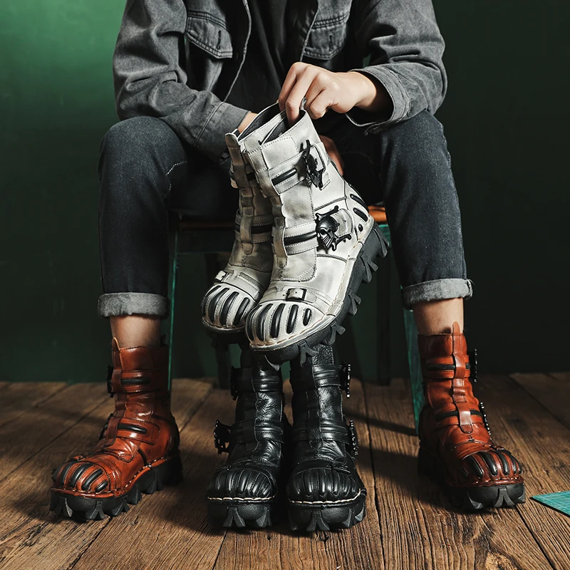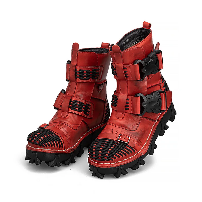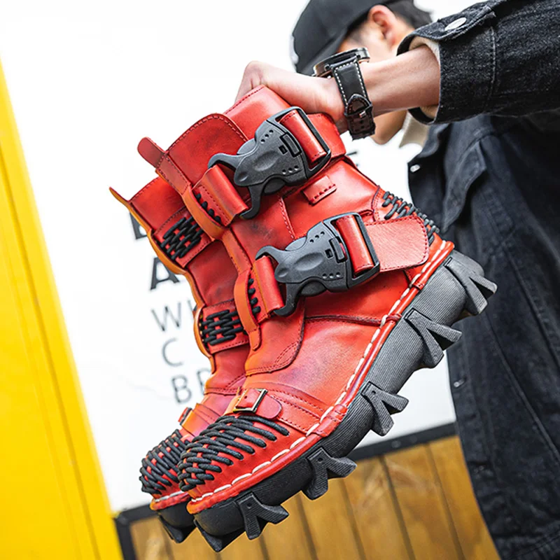 Модные мужские ботинки красного цвета ботинки из натуральной кожи ботильоны мотоциклетные ботинки в стиле панк зимние ботинки ручной работы на платформе и толстом каблуке