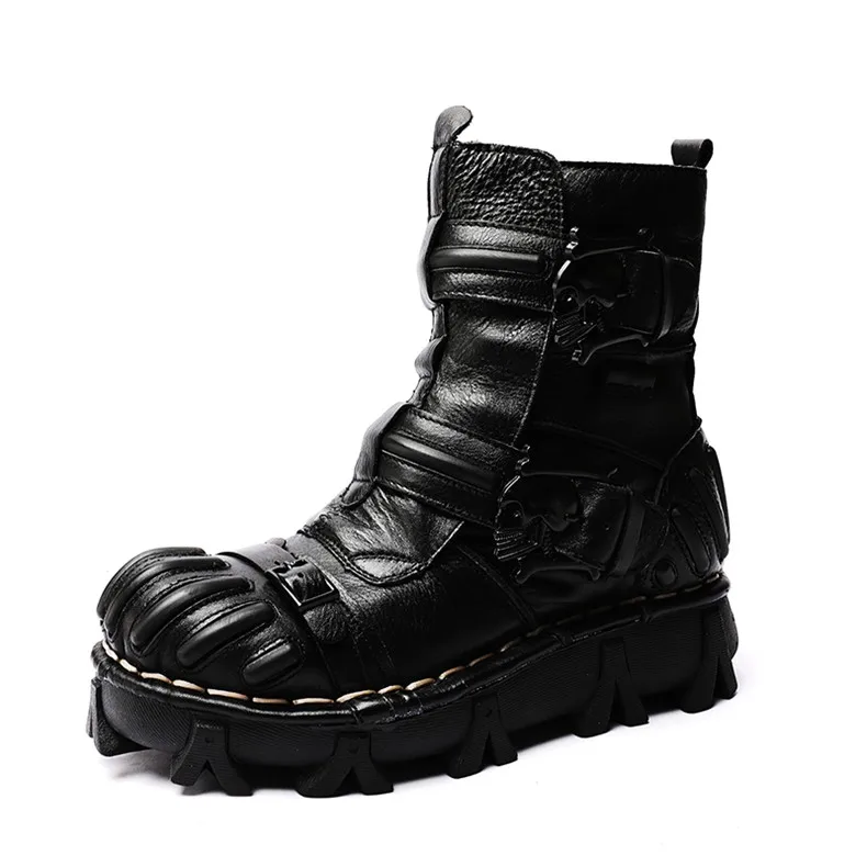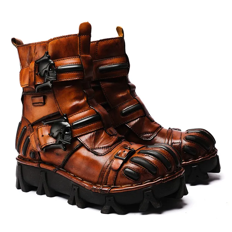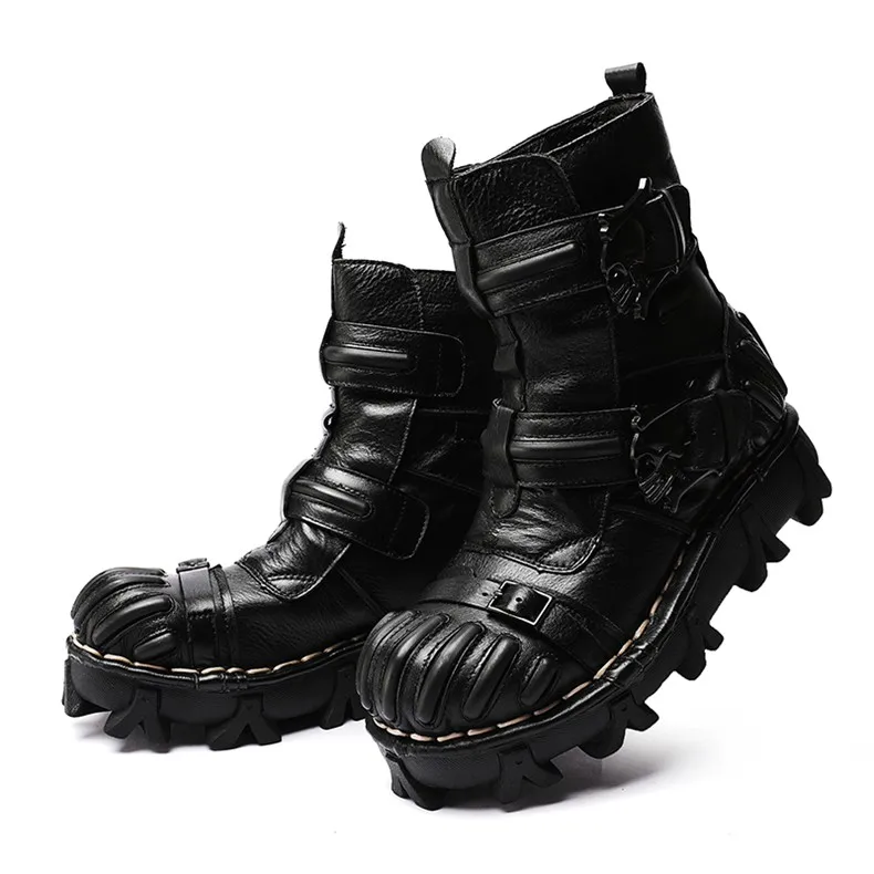 Мотоциклетные ботинки из натуральной кожи, с черепом, ботинки в сти...