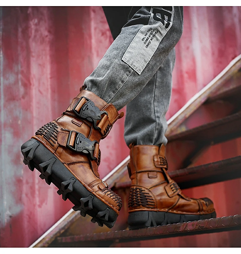 Мужские мотоциклетные ботинки из натуральной воловьей кожи; Военные...