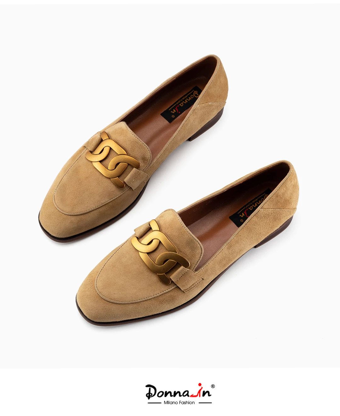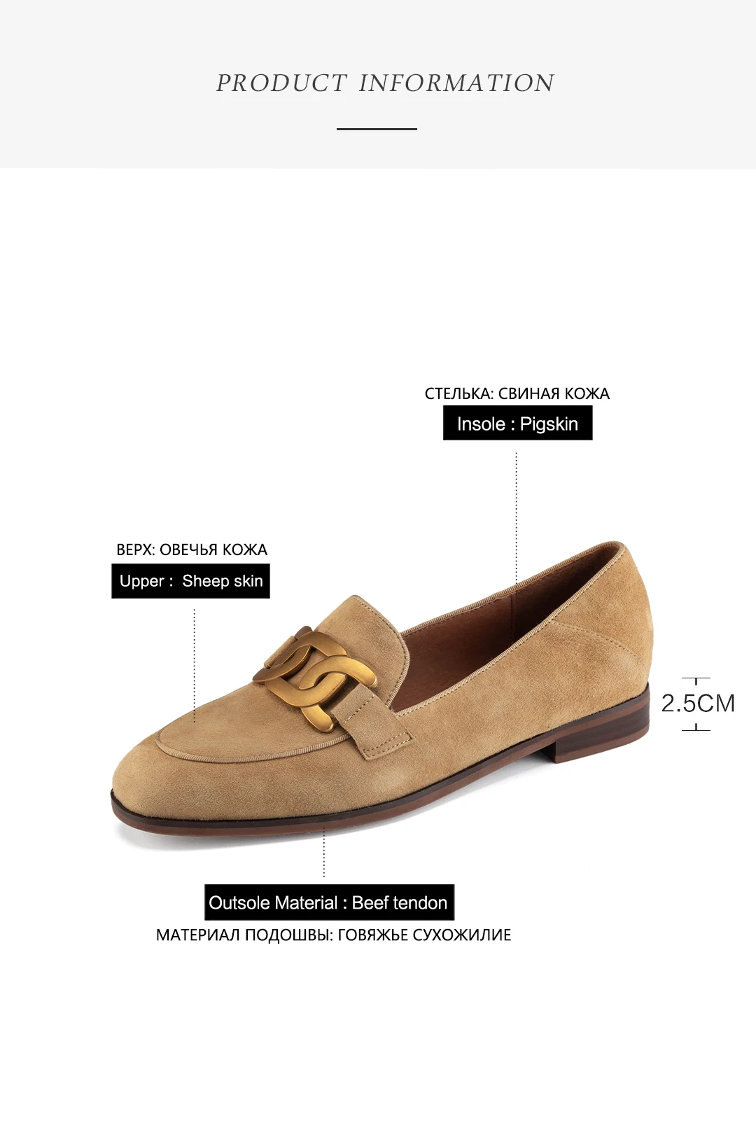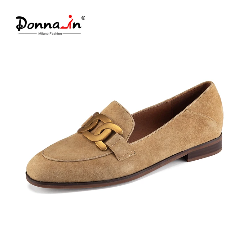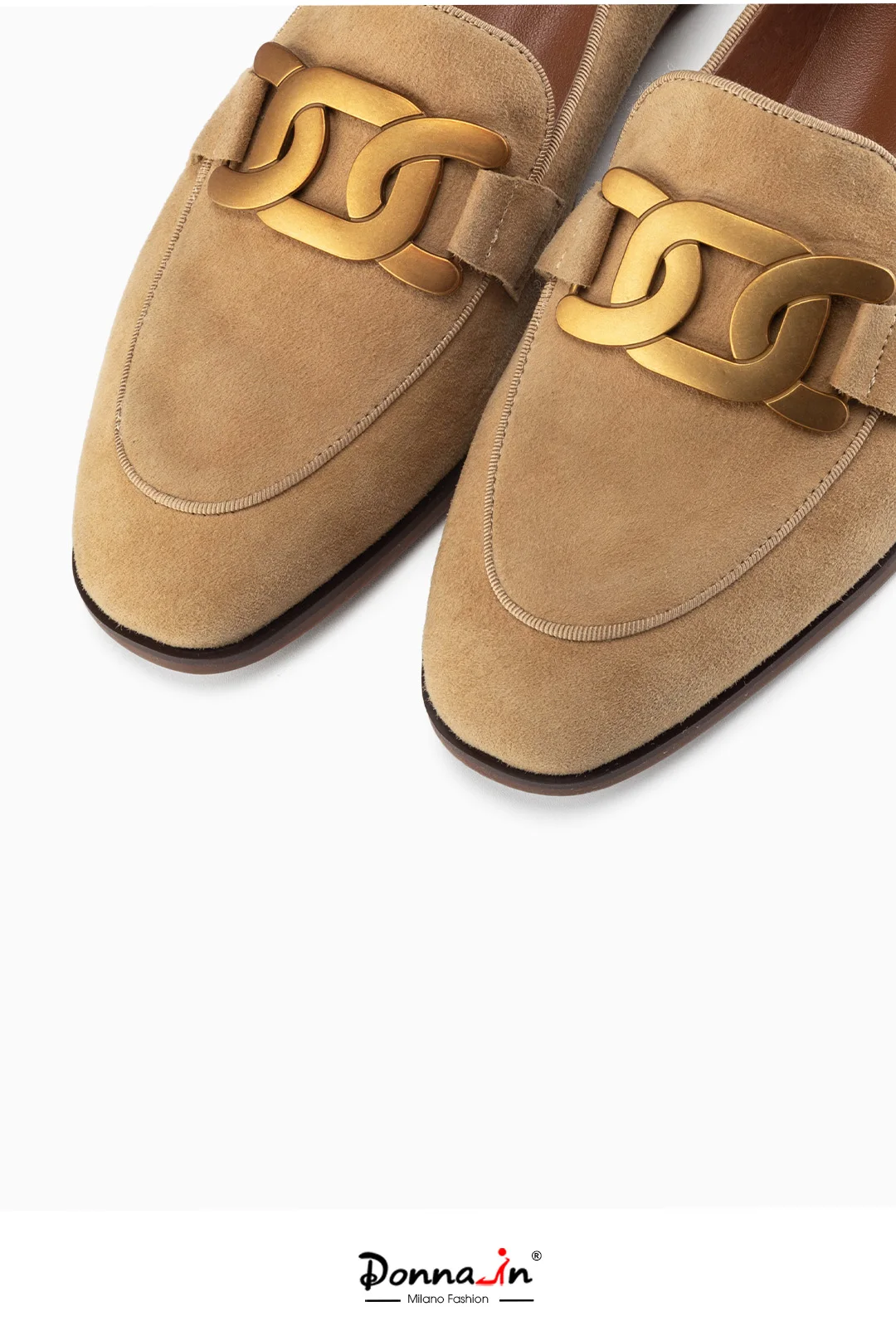 Donna-in2021 весенняя женская обувь из овечьей кожи; Лоферы на низком каблуке; Замшевые туфли-лодочки с металлической цепочкой; Женская обувь из натуральной кожи с квадратным носком