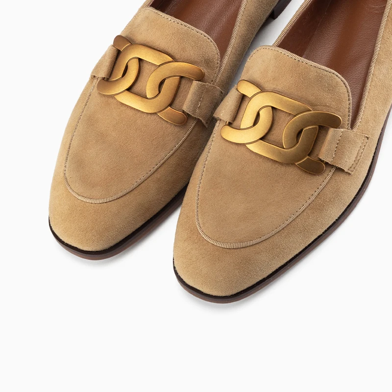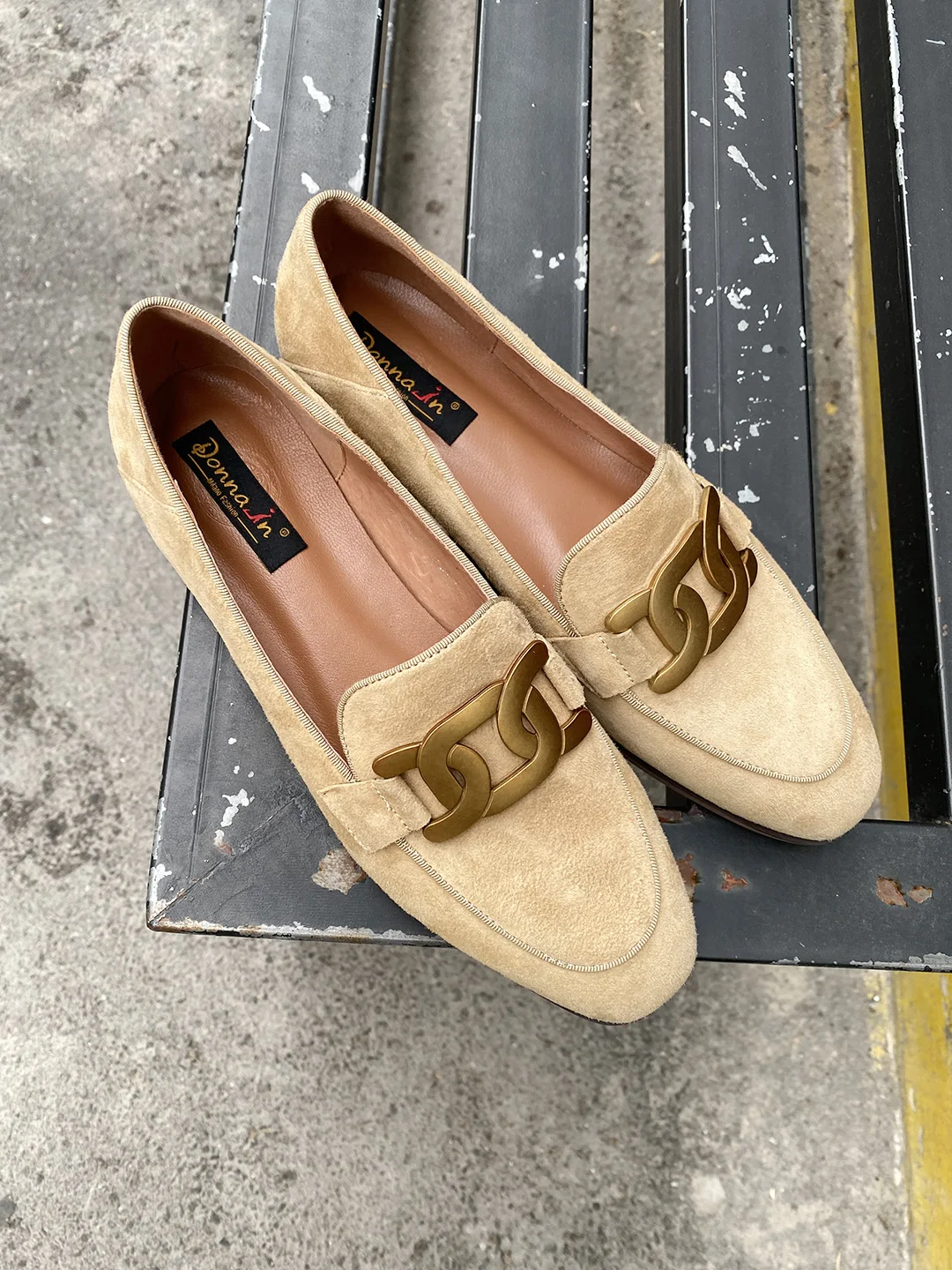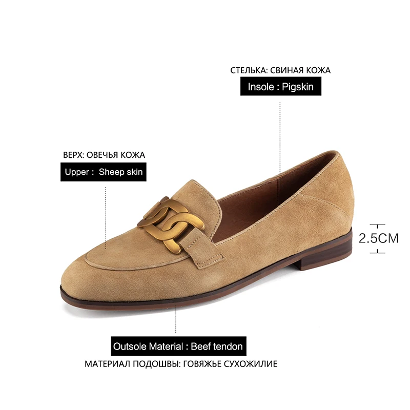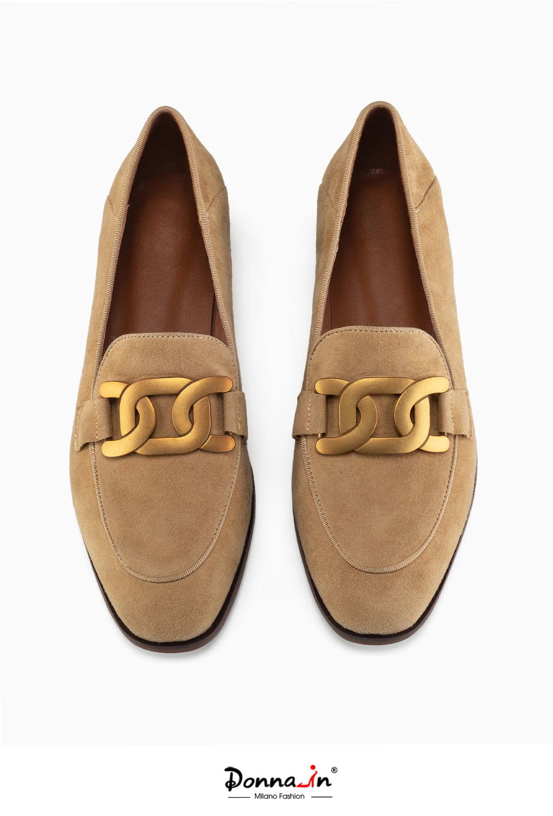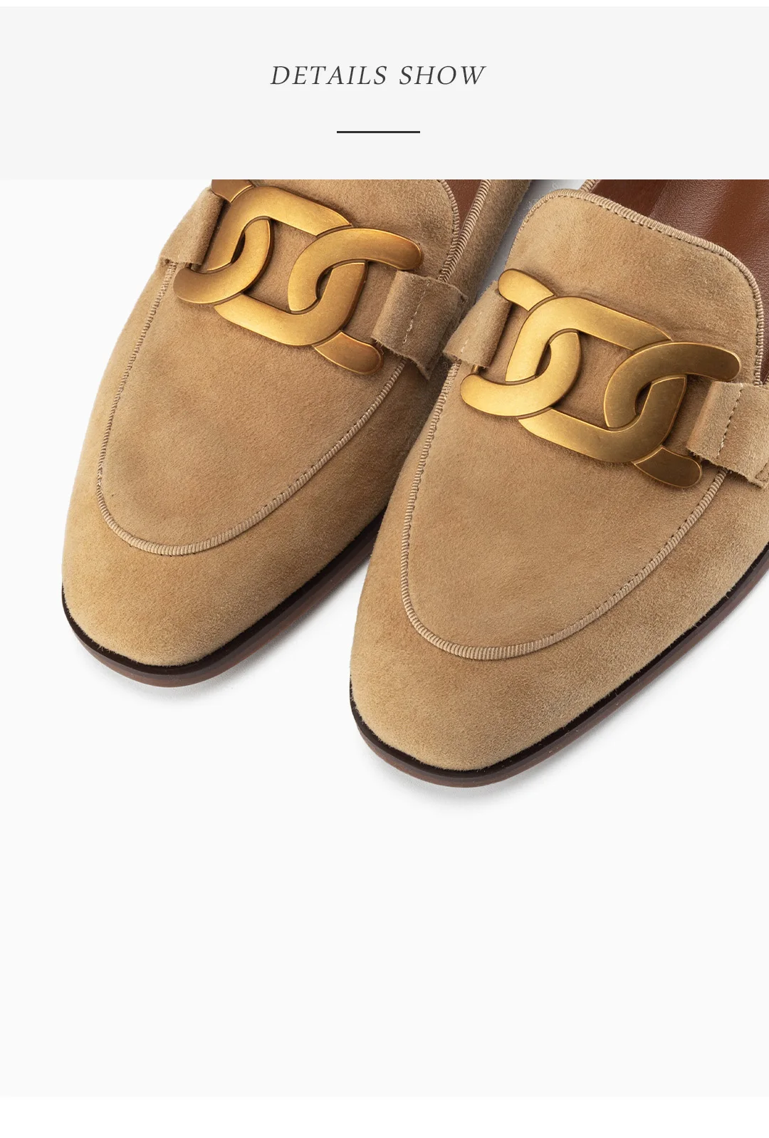 Donna-in2021 весенняя женская обувь из овечьей кожи; Лоферы на низком каблуке; Замшевые туфли-лодочки с металлической цепочкой; Женская обувь из натуральной кожи с квадратным носком