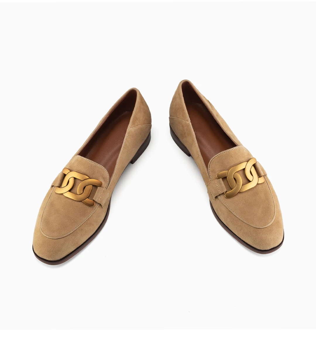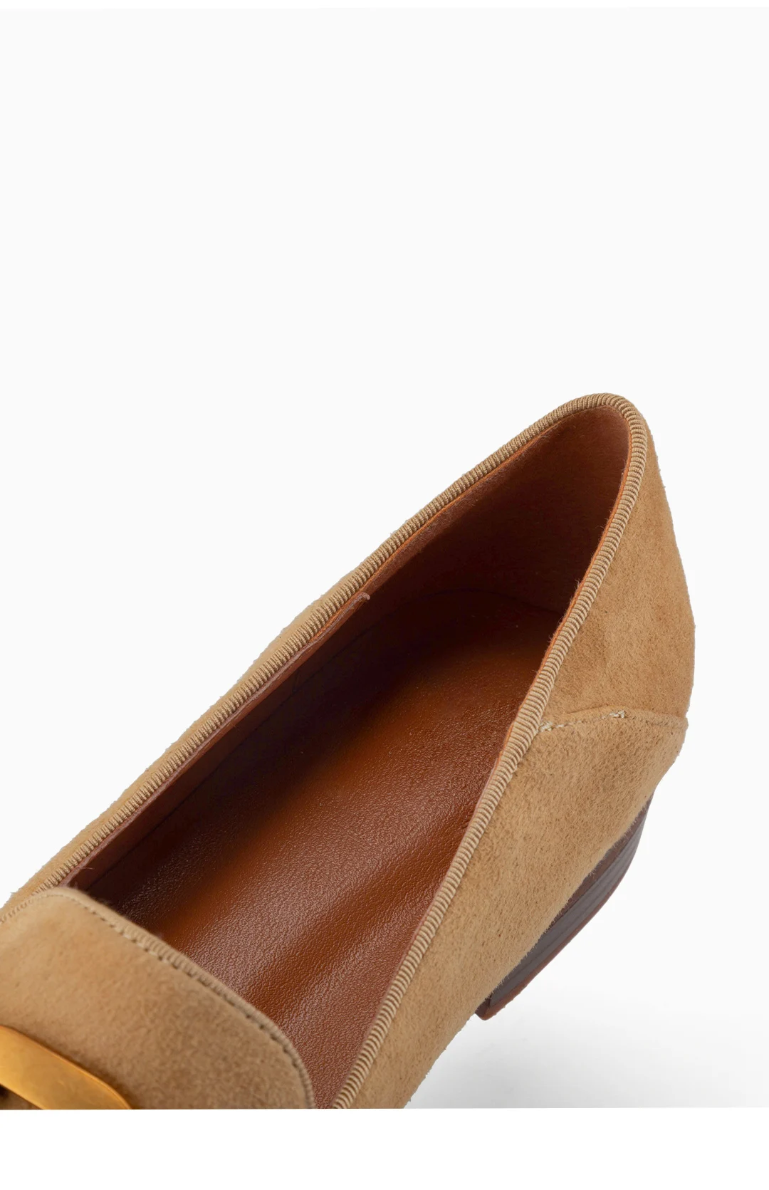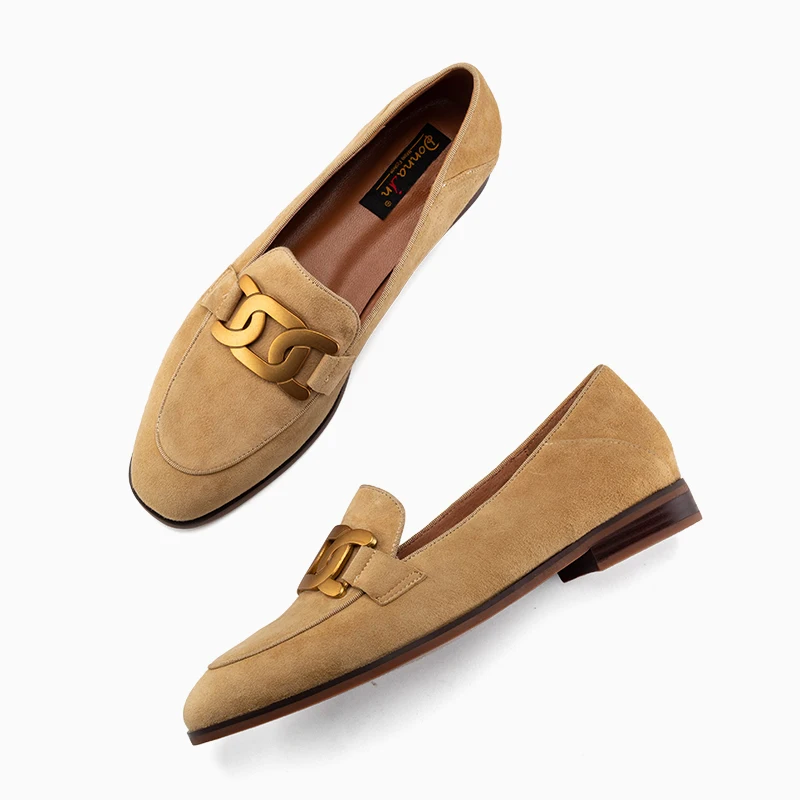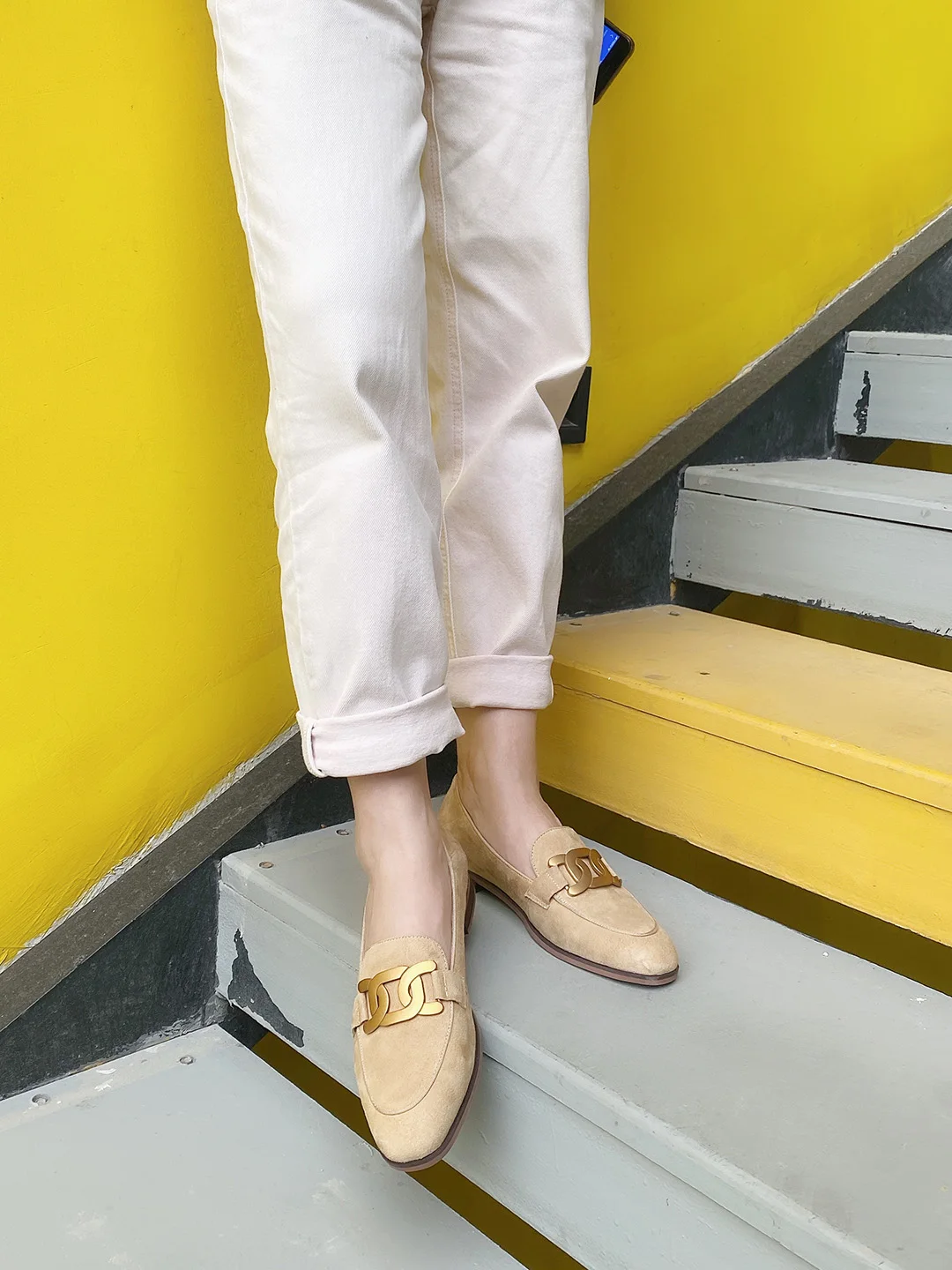 Donna-in2021 весенняя женская обувь из овечьей кожи; Лоферы на низком каблуке; Замшевые туфли-лодочки с металлической цепочкой; Женская обувь из натуральной кожи с квадратным носком