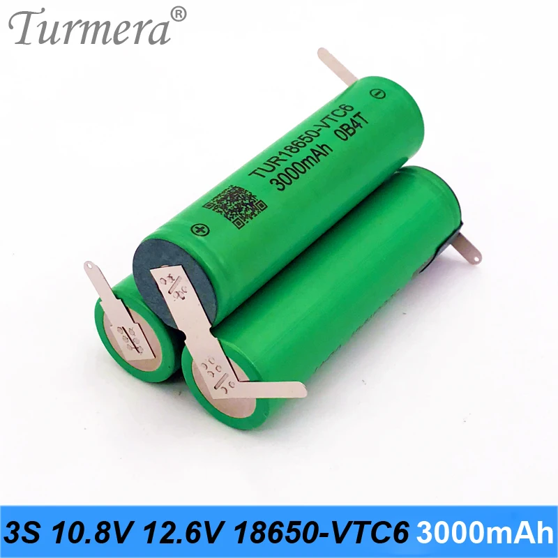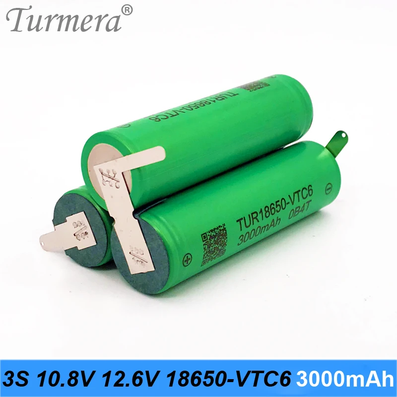 Аккумулятор Turmera 3S 12,6 в, 10,8 В, VTC6, TUR18650VTC6, 3000 мАч, 30 А, аккумулятор для отвертки 12 В, на заказ или для воздушного дрона