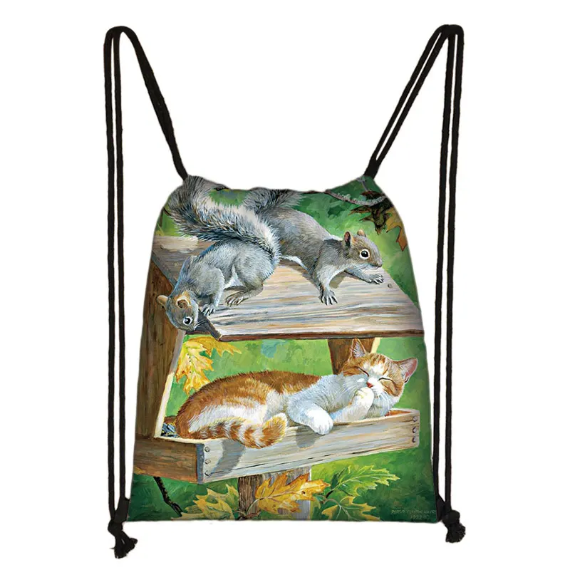 Сумка на шнурке с милыми животными для женщин и мужчин, Модный скла...