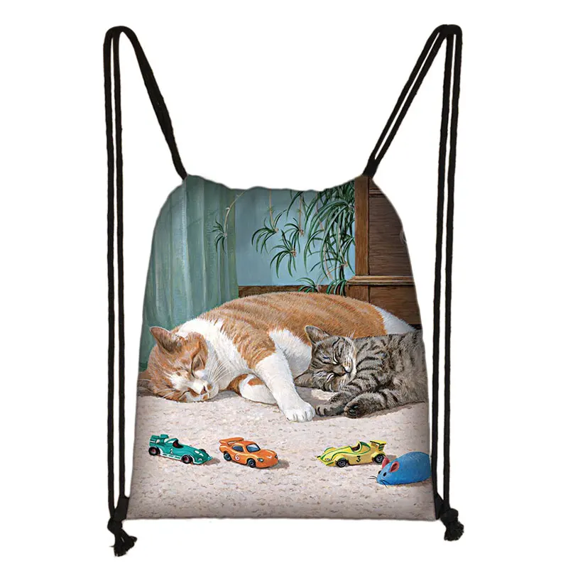 Сумка на шнурке с милым черным котом, женский рюкзак с мягкой спинк...