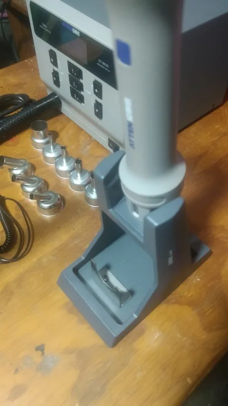 Очень хороший продавец прибыл в течение недели. Хорошо работает угловые наконечники являются обязательными элементами, что делает ремонт платы намного проще, чем прямые наконечники. Он имеет мощность в запасе, я могу удалить маленькие smd резисторы и небольшие чипы, такие как tmc2209 в считанные секунды на около 20% air 410c. Если вы работаете на телефонах, ноутбуки, эта вещь имеет больше мощности, чем вам когда-либо нужно, но она также имеет достойный контроль на низком уровне для небольших вещей. Качество сборки хорошее, шланг очень гибкий и не садится. Только вещи для улучшения, если шланг был немного длиннее, его всего 108 см от машины до кончика палочки. Другие улучшения-сделать основание немного тяжелее/шире. Если он расположен хорошо, то его хорошо, но он может упасть, если у вас есть немного закрутки в шланге. Я не думаю, что вы можете получить лучшую переделку горячей воздушной станции за эти деньги. Единственное, что я могу сделать, это заказать Запасной картридж нагревателя, только если они перестанут делать их в качестве запасных частей.