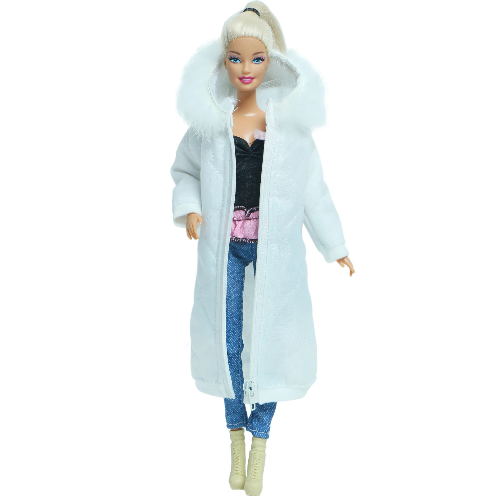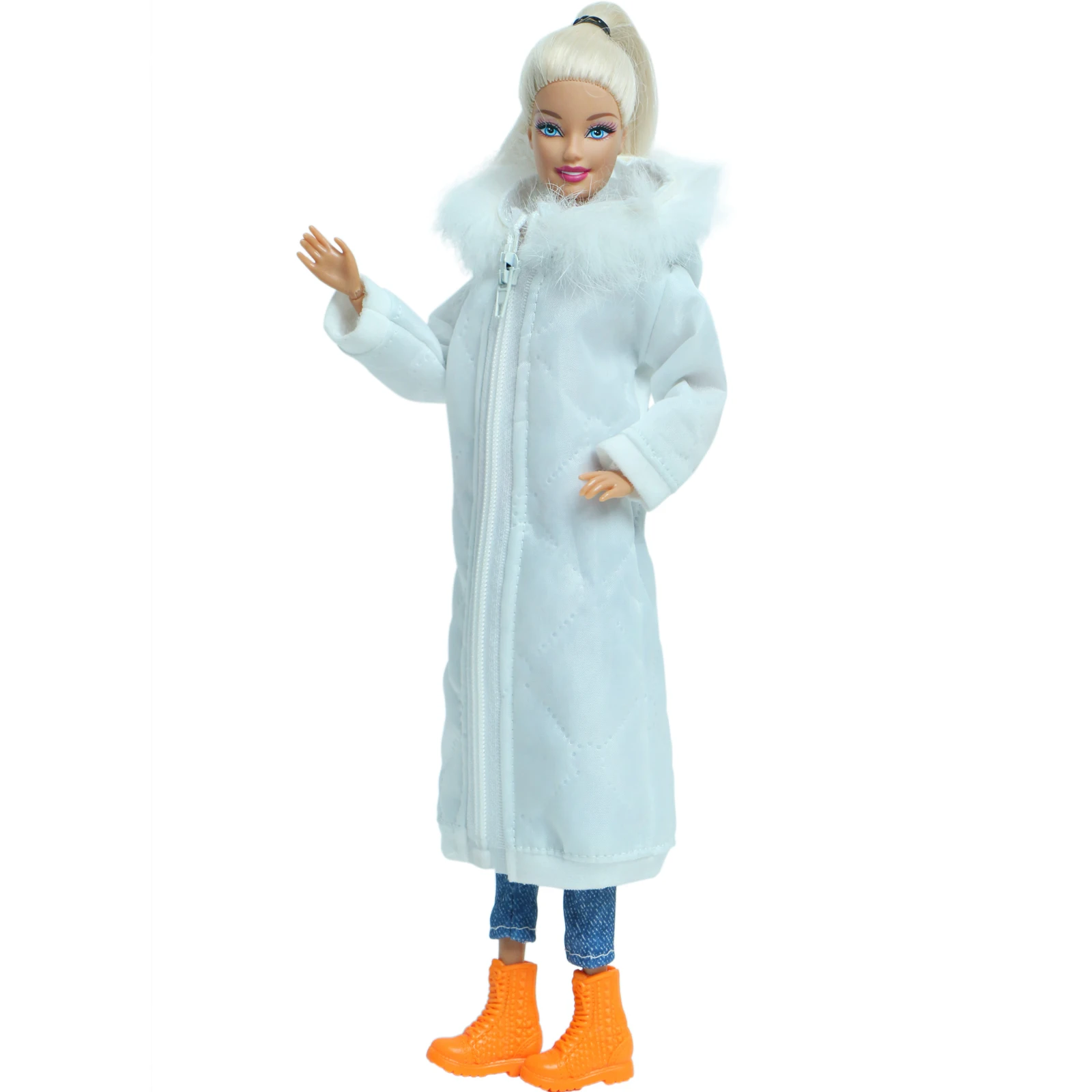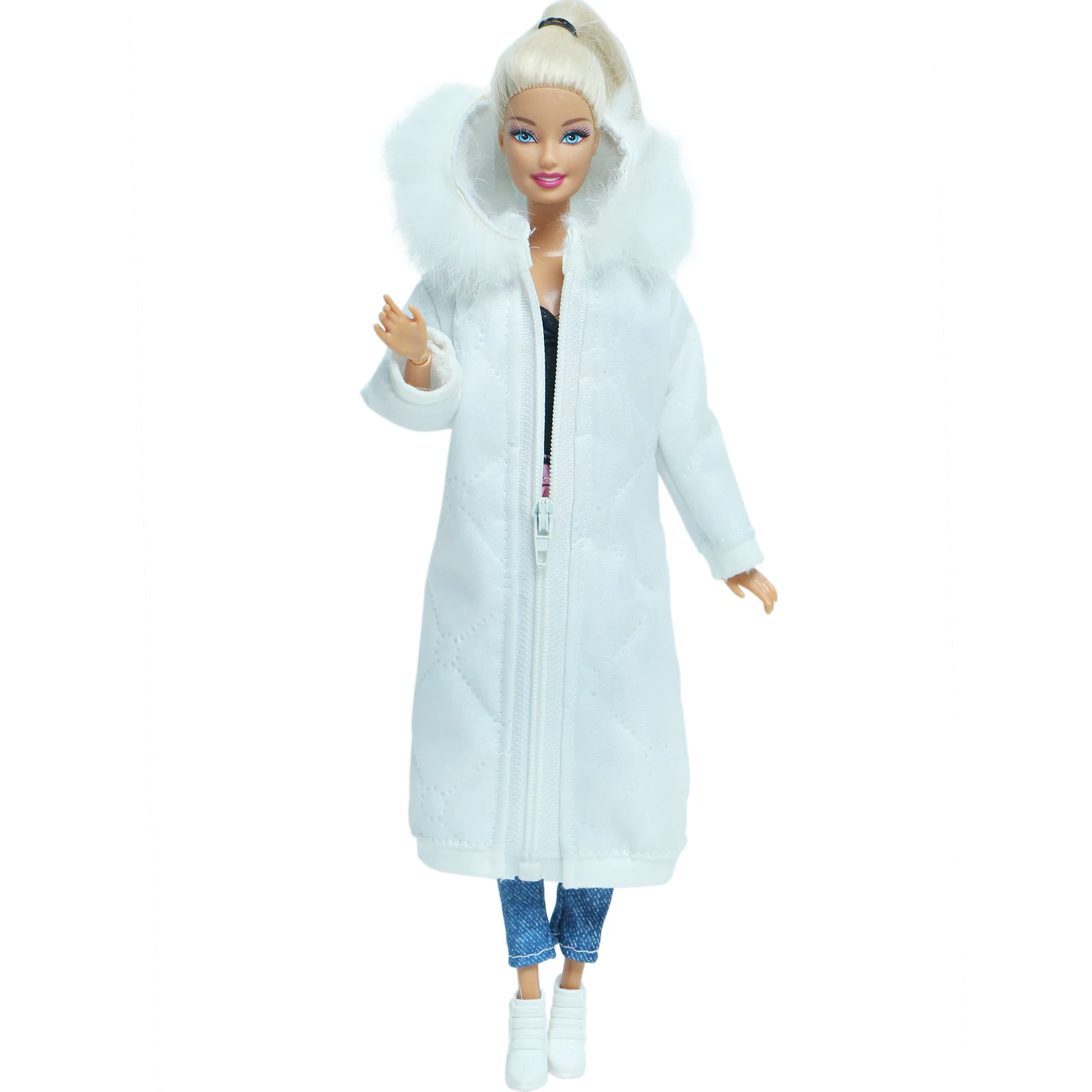 2 шт.лот, белое зимнее длинное пальто, платье с обувью, аксессуары, одежда для кукол Барби, парка, куртка, детские игрушки