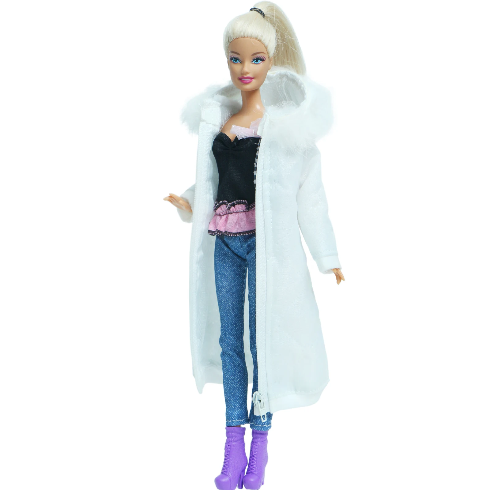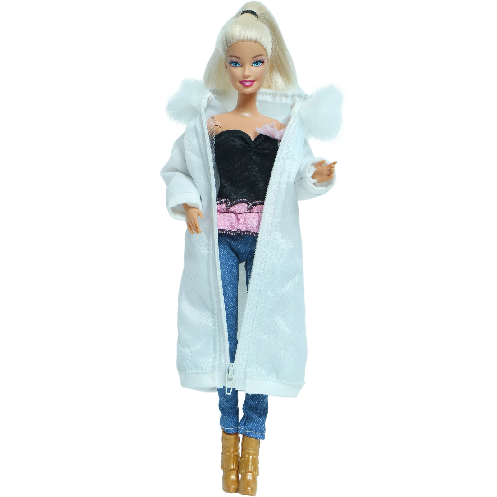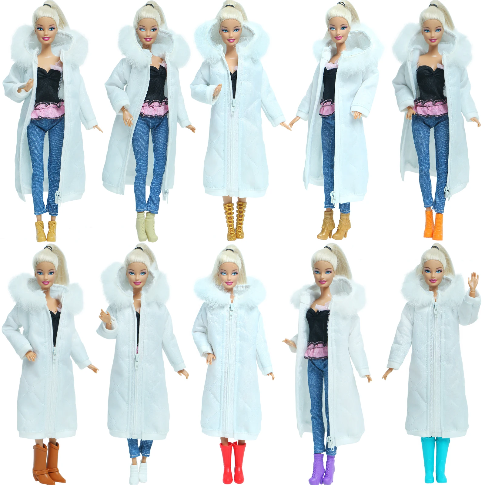 2 шт.лот, белое зимнее длинное пальто, платье с обувью, аксессуары, одежда для кукол Барби, парка, куртка, детские игрушки