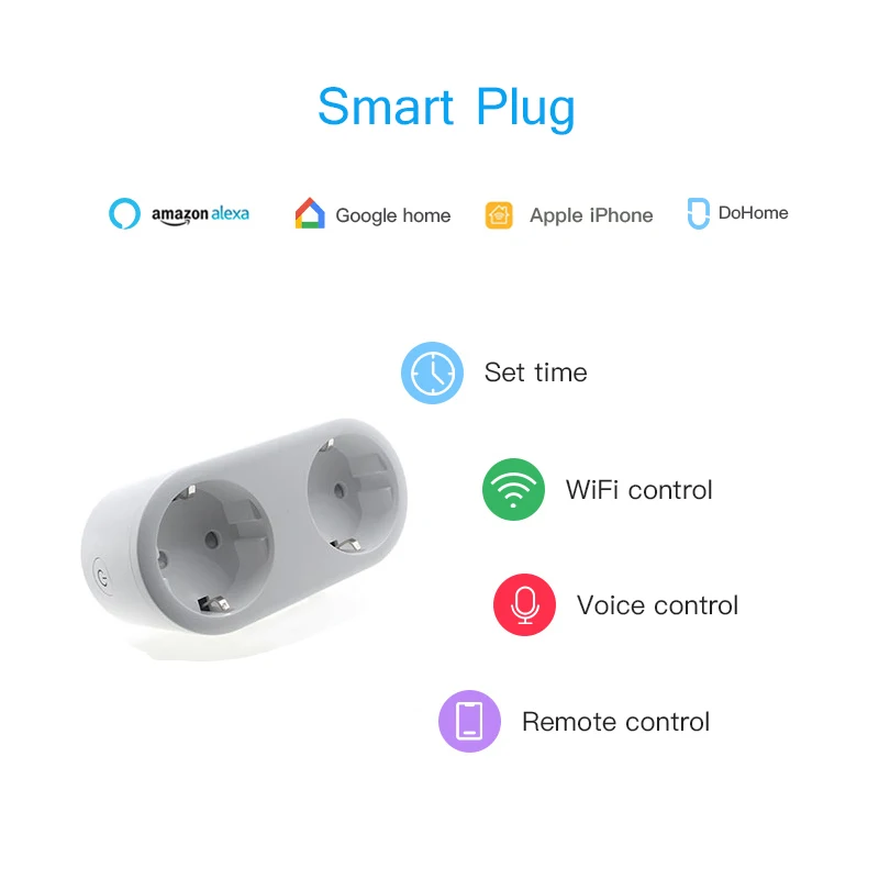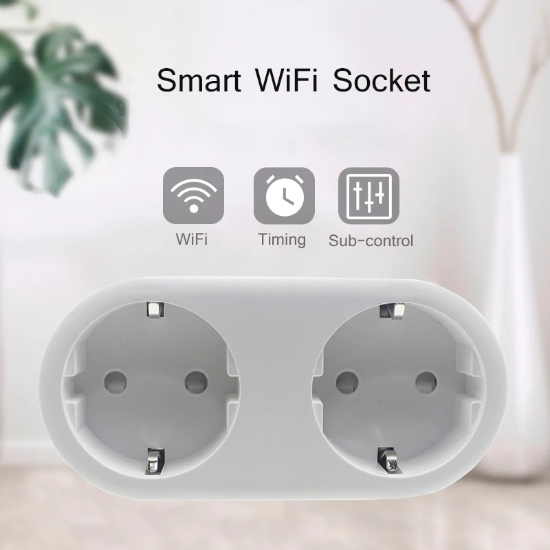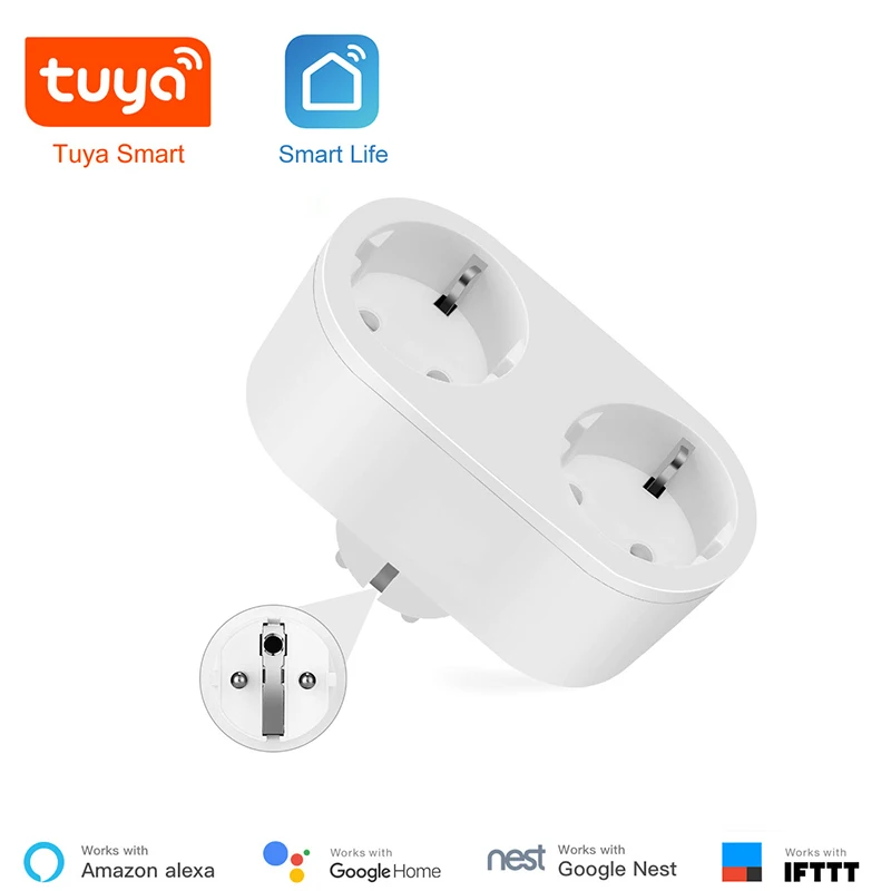 Умный выключатель Wi-Fi, двойные розетки, двойной слот, адаптер для ЕС, Tuya, умная розетка для монитора питания, работает для Alexa, Google Home