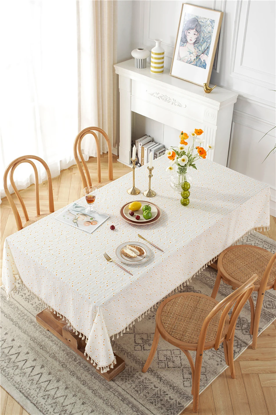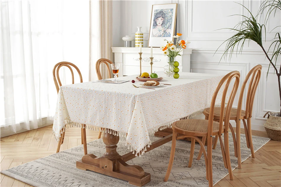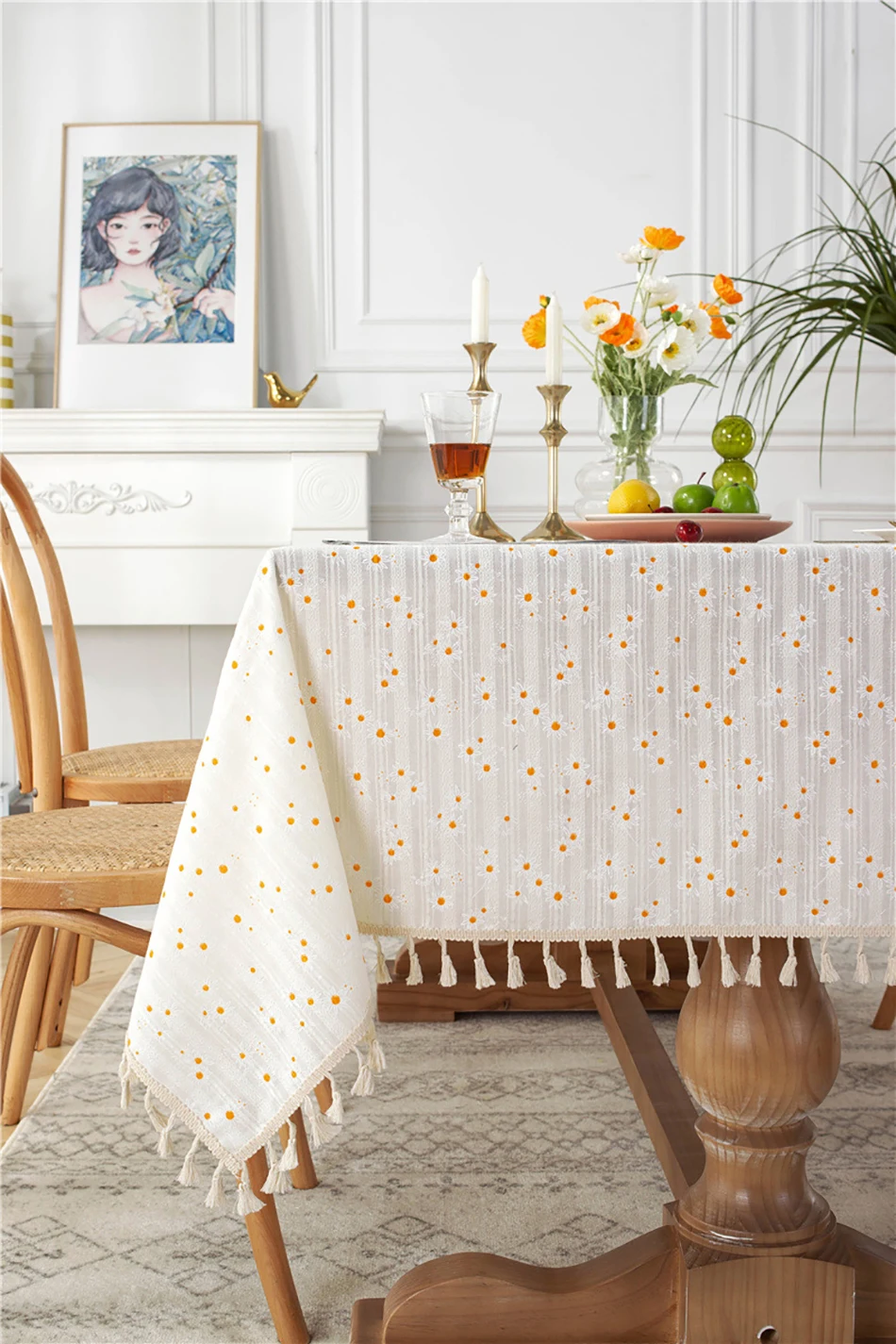Пасторальная желтая скатерть Маргаритка Добби Пылезащитная Геометрическая мантия де меса прямоугольная кофейная столовая украшение стола