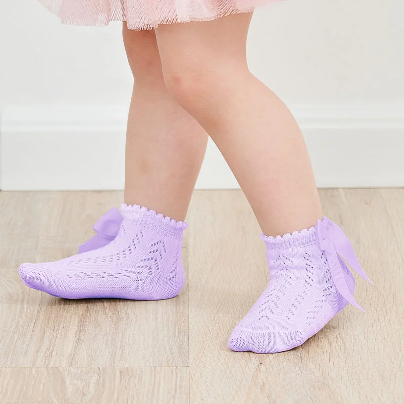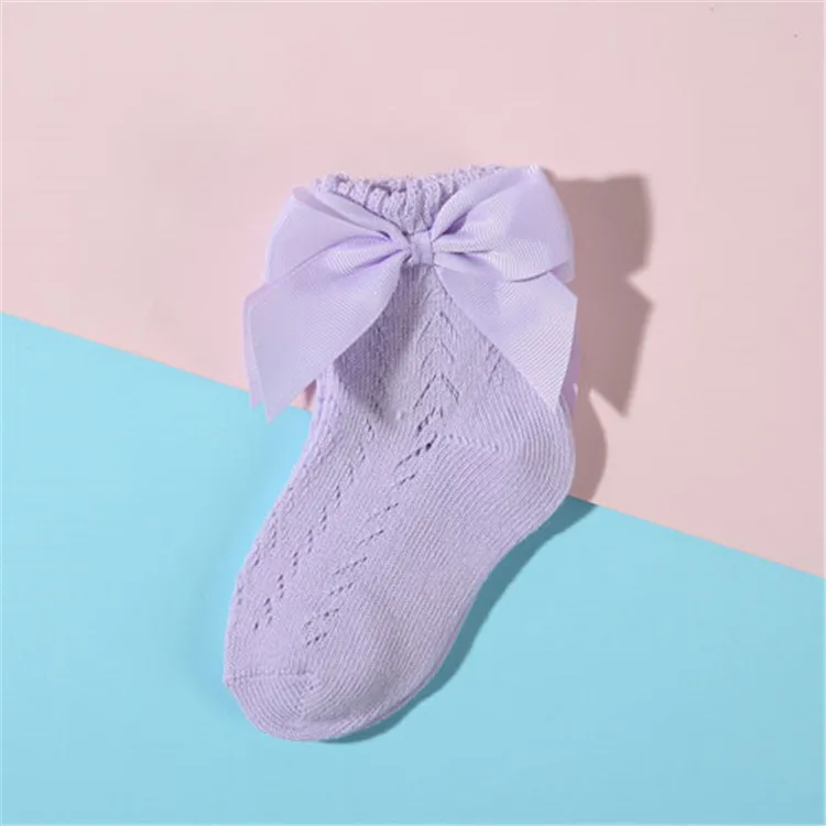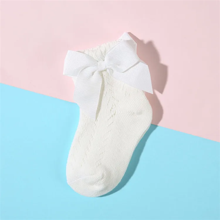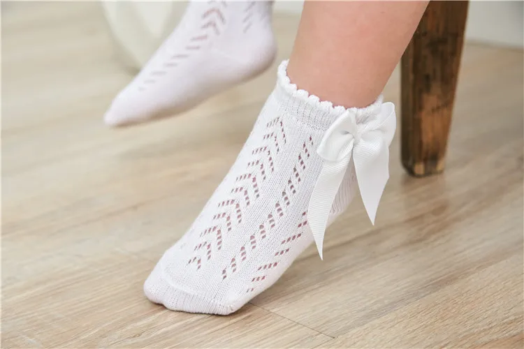 Носки для девочек Lawadka, летние, сетчатые, белые, красные, тонкие, с бантом, 2021