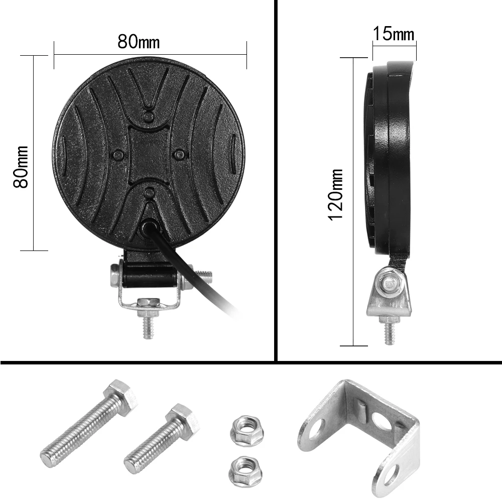 Напряжение: 9-30 вЛуч: точечный, карандашный луч, точечный лучСрок службы: 50000 часовРабочая температура: -40 °C ~ + 85 °CСтепень водонепроницаемости: IP67Материал: литой алюминиевый корпус, кронштейн из нержавеющей стали, линза PC.