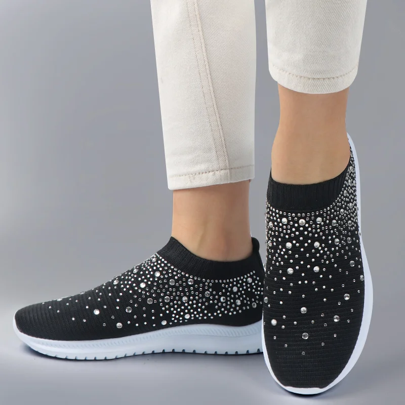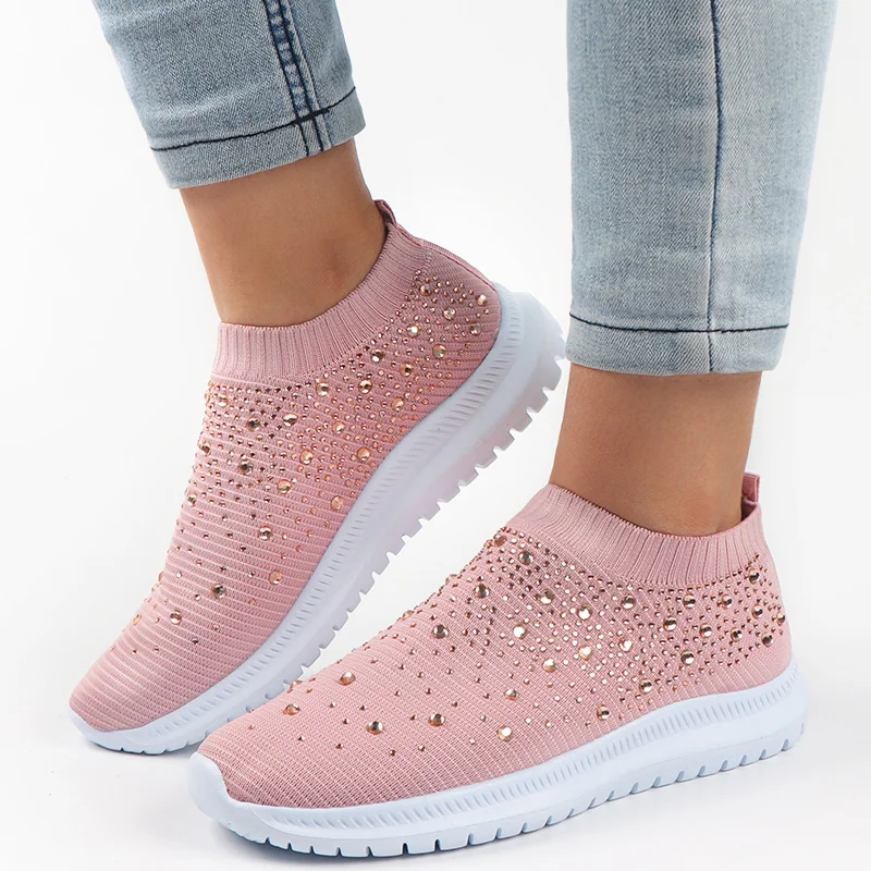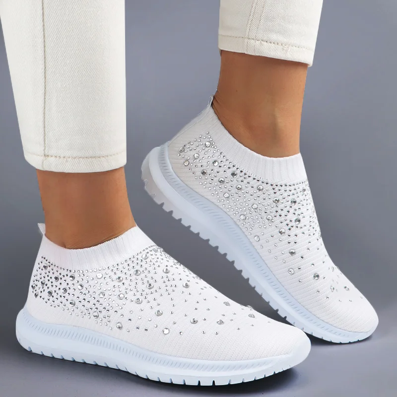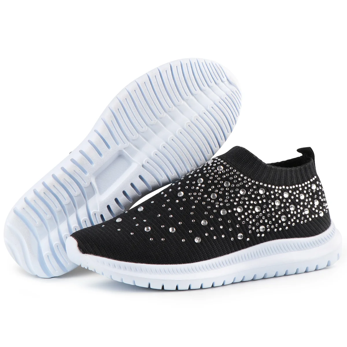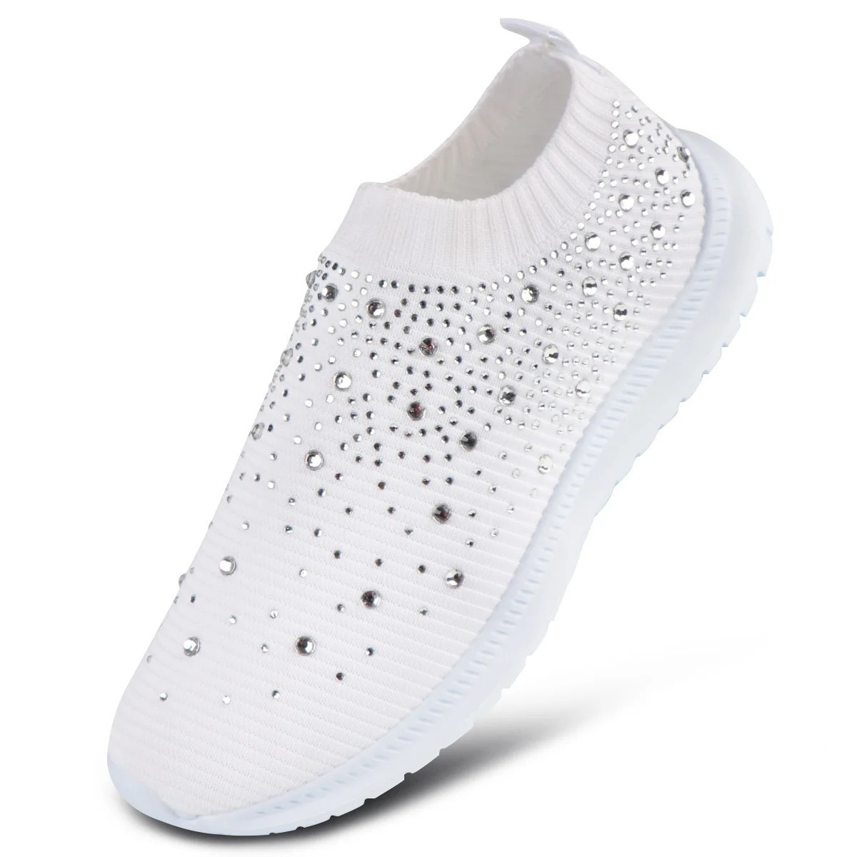 Белые кроссовки, женские модные туфли на плоской подошве со стразами, блестящие Повседневные слипоны, кроссовки, женские кроссовки, летняя женская Вулканизированная обувь