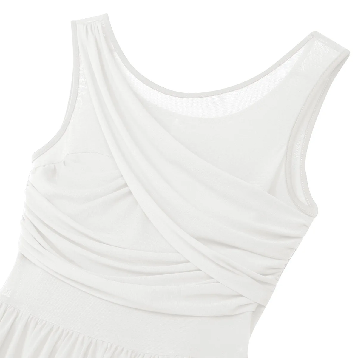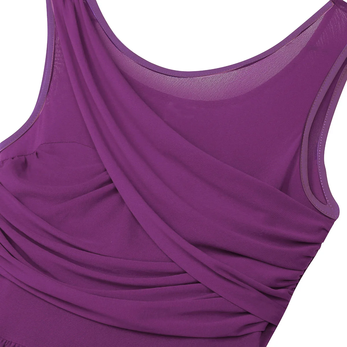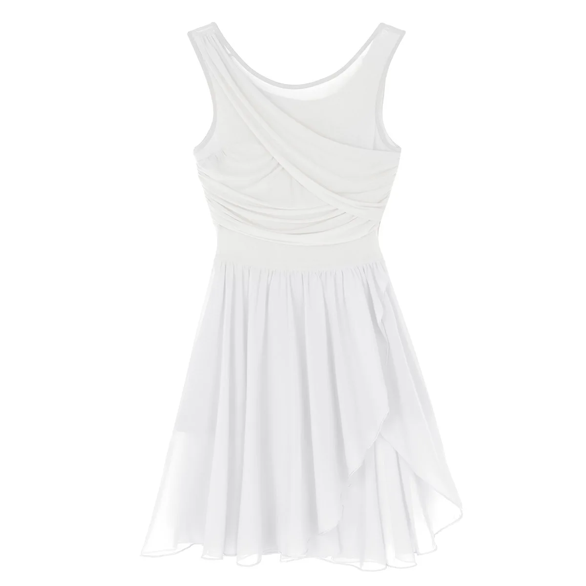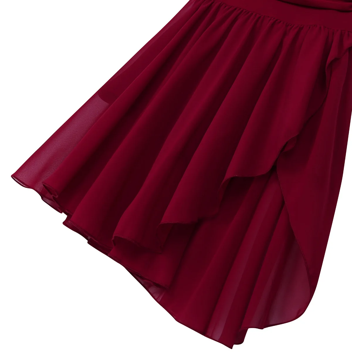 # От XS до XL Для женщин Взрослый без рукавов Cut Out Асимметричная шифоновая эластичная балетный танец платье, гимнастический купальник