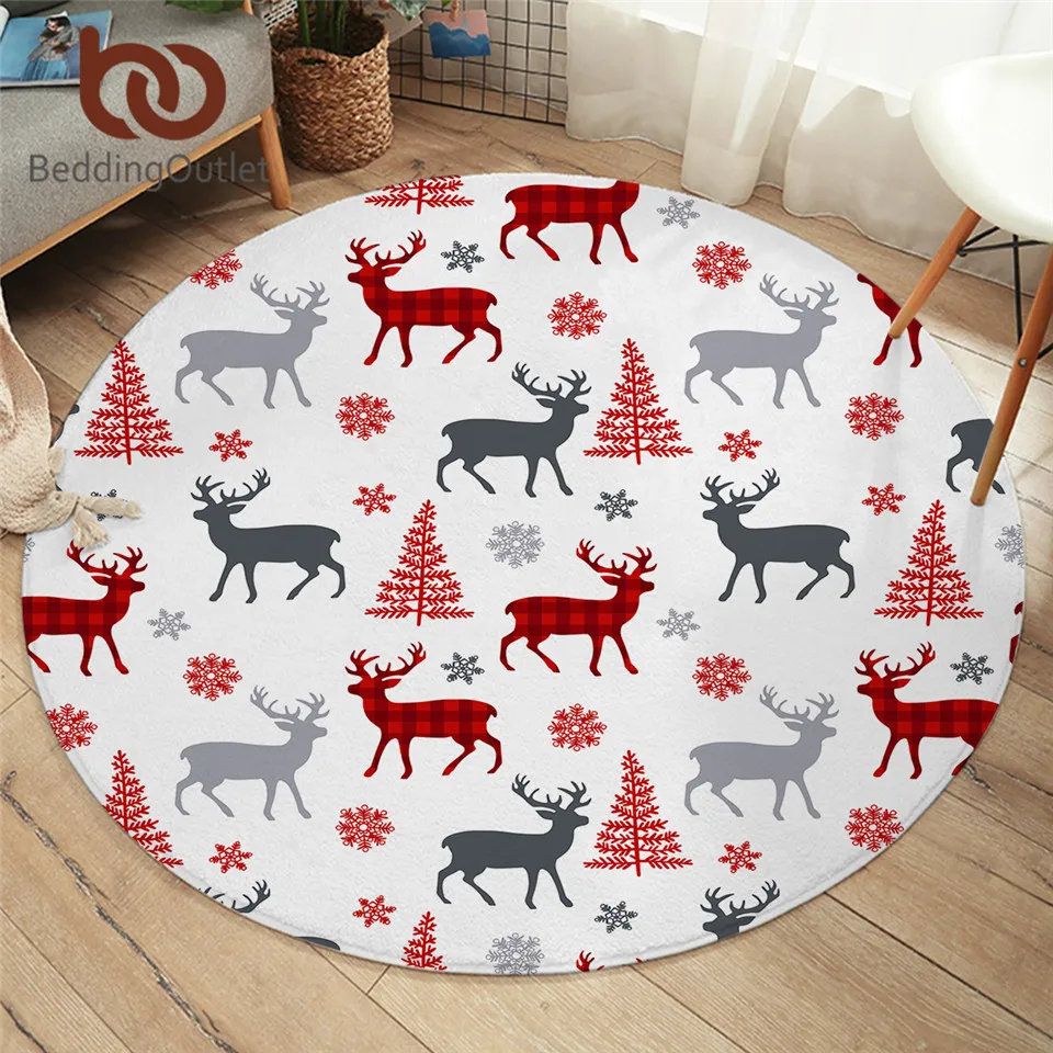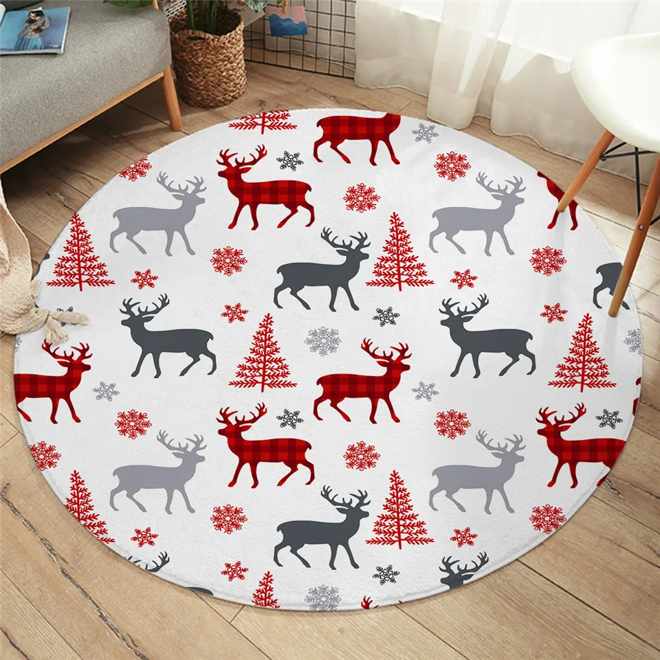 Постельные принадлежности, Рождественский олень, коврик для спальни, снежинки, круглый ковер, дерево, Подарочный коврик, олень, гостиная, альфомбра 100 см