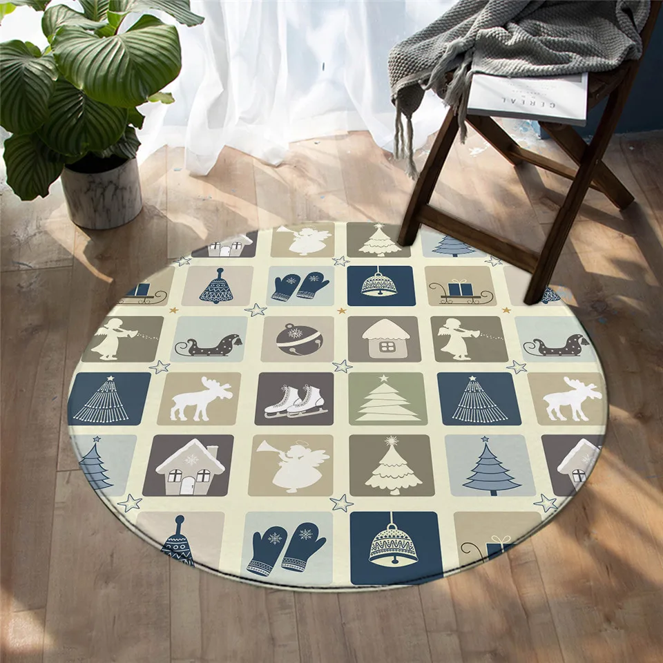 Круглый ковер в клетку для дома, Рождество Рождественские украшения...