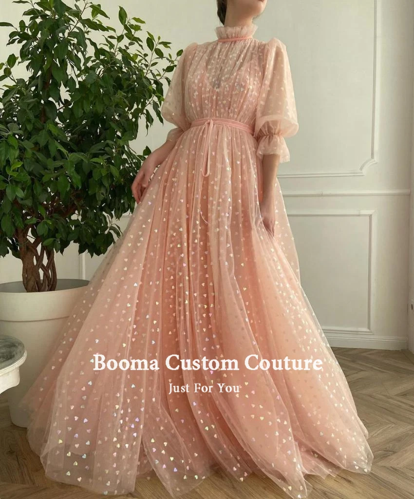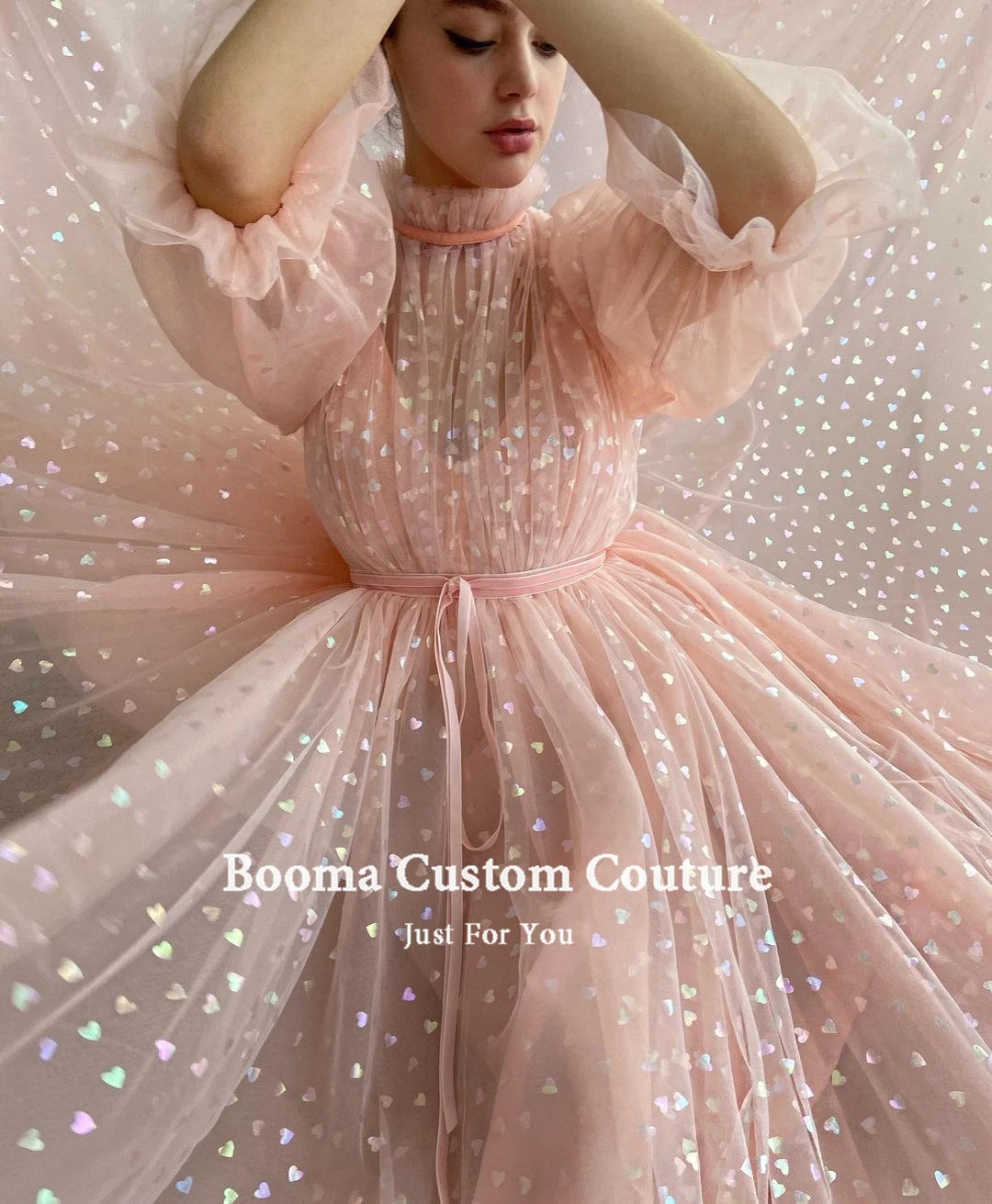 Booma, розовое пышное свадебное платье, 2021, короткие рукава, высокая вырез, свадебные платья, ТРАПЕЦИЕВИДНОЕ Тюлевое свадебное платье, размера плюс