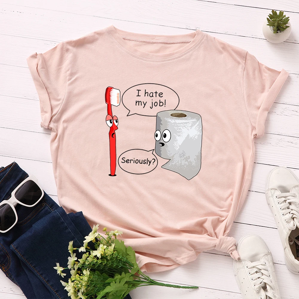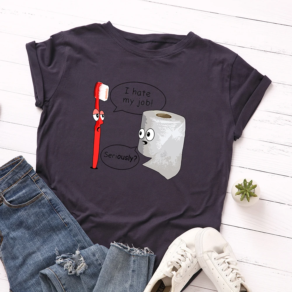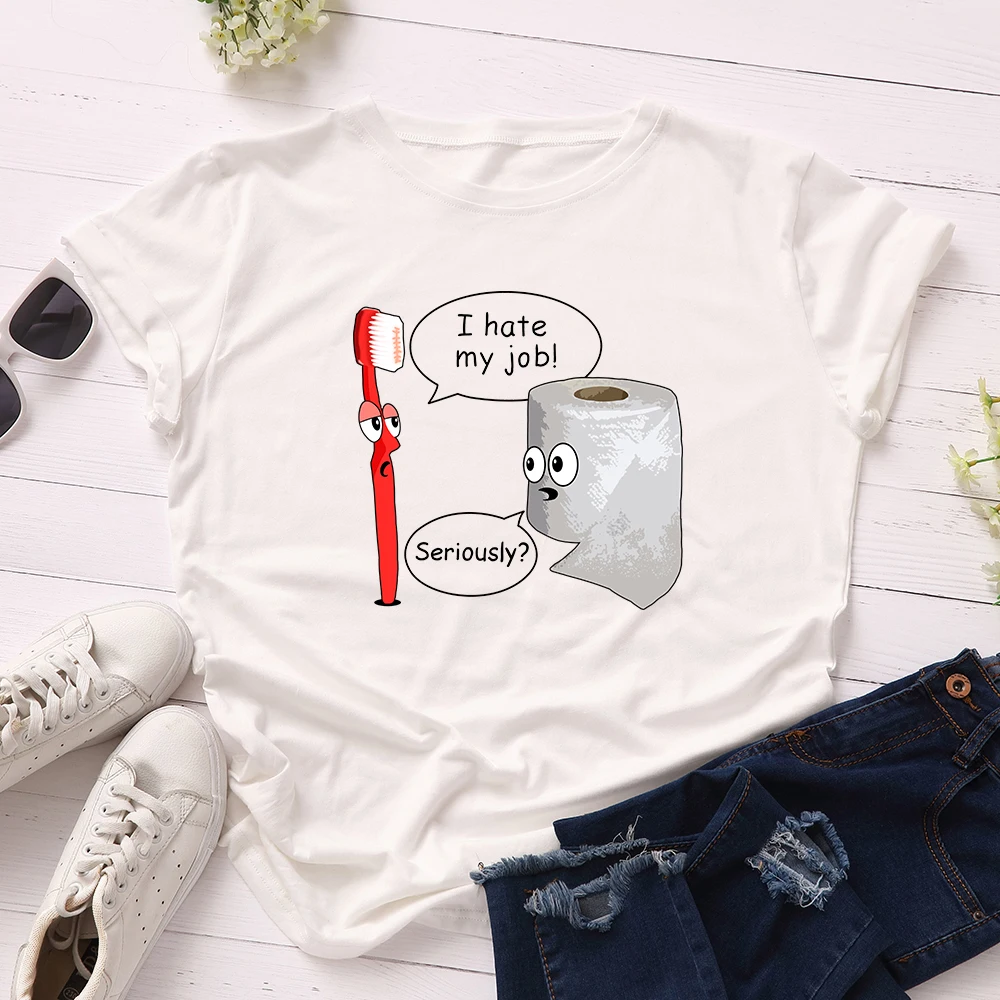Футболки женские большого размера из 100% хлопка с коротким рукавом и рисунком зубной пасты