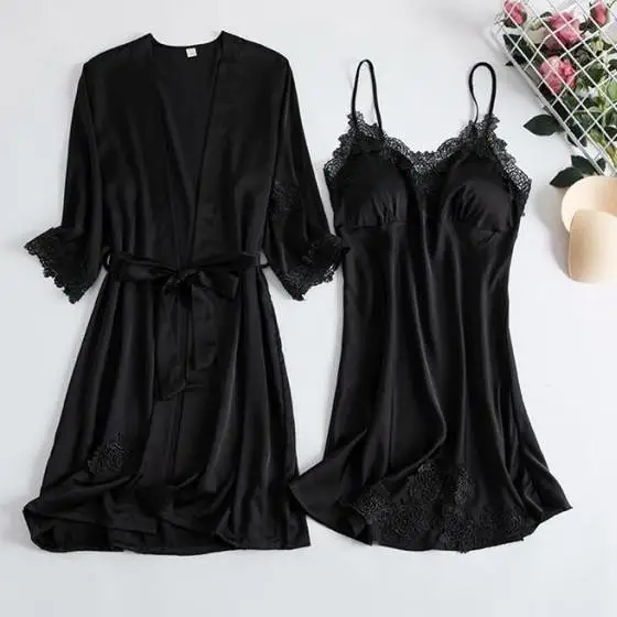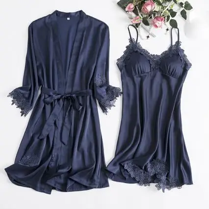 Халат-кимоно Женский атласный, комплект из 2 предметов, одежда для сна, ночная рубашка, интимное белье, повседневный свободный халат, пикантная ночная рубашка, на лето