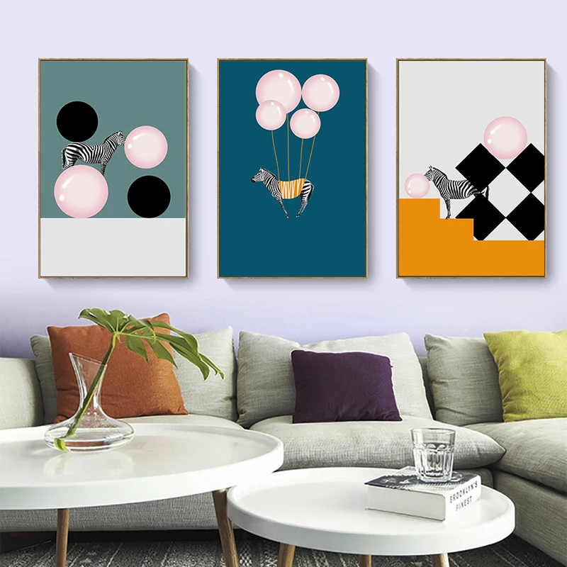 Детская постеры с животными Зебра Розовый баллон животного на холсте Картины Печать Дети Украшения в спальню Настенная картина для дома Cuadros