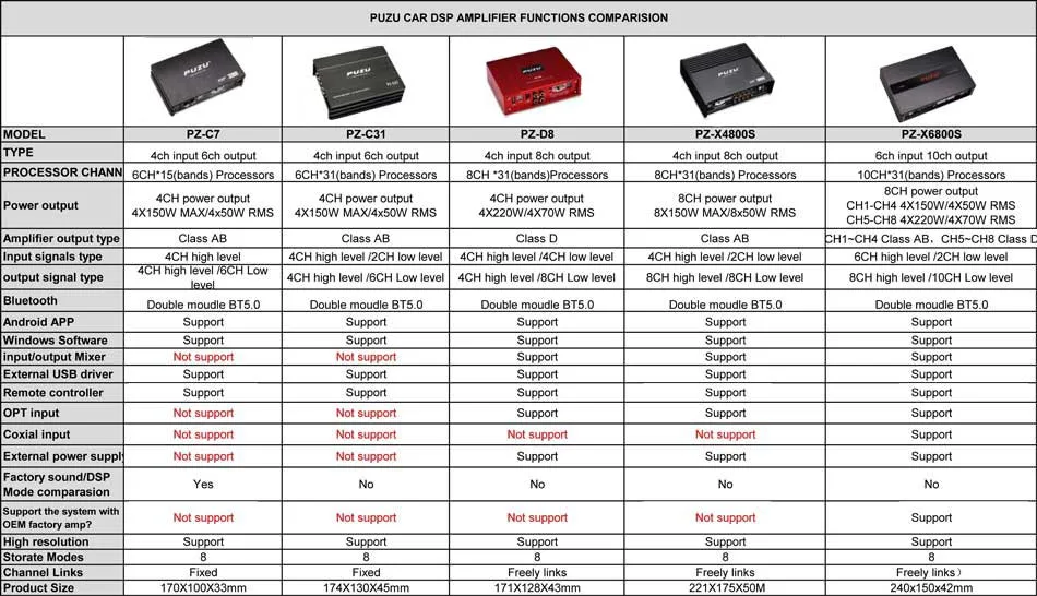 PUZU PZ-X4800S, 6 ядер, 32 бит, 8 каналов, с мощностью, автомобильный аудио, DSP, цифровой сигнальный процессор, встроенный усилитель, 8x150вт, поддержка BT5.0, опт