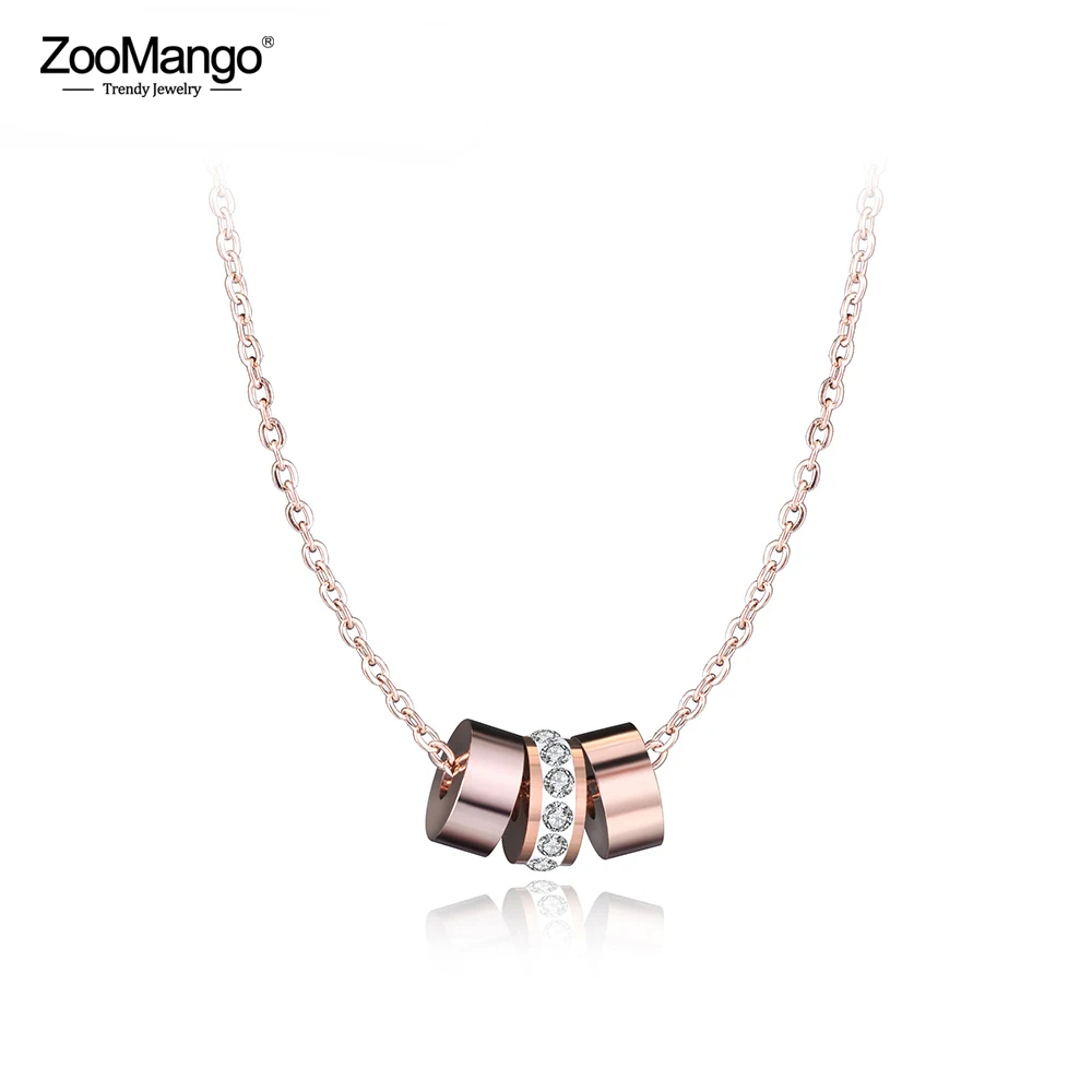 ZooMango Мода из нержавеющей стали кружки Стразы ожерелье "Звездная пыль" для женщин из розового золота, ожерелья с подвесками, ювелирное изделие, колье ZN17020