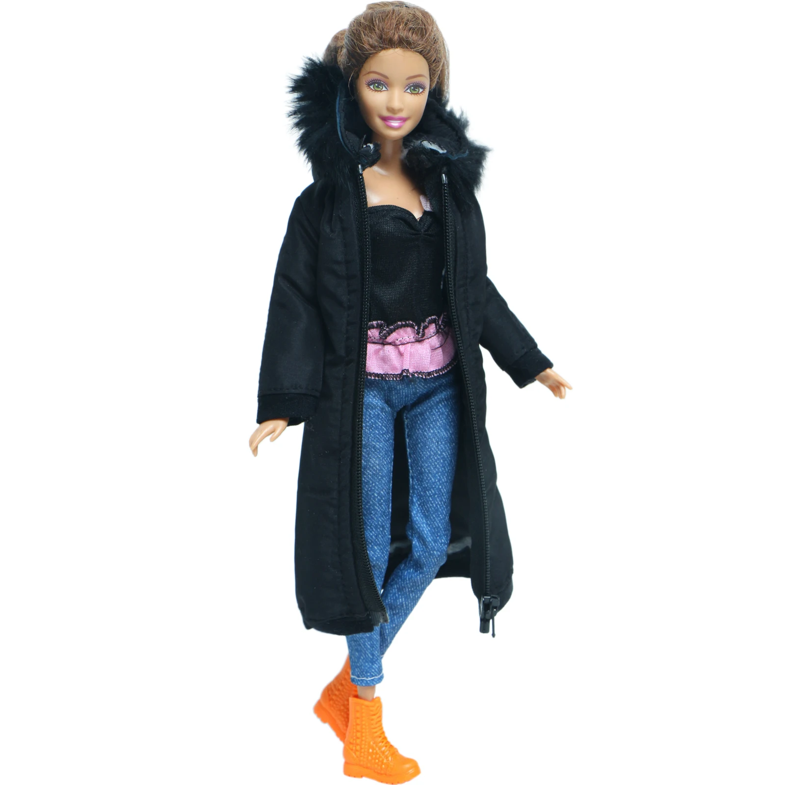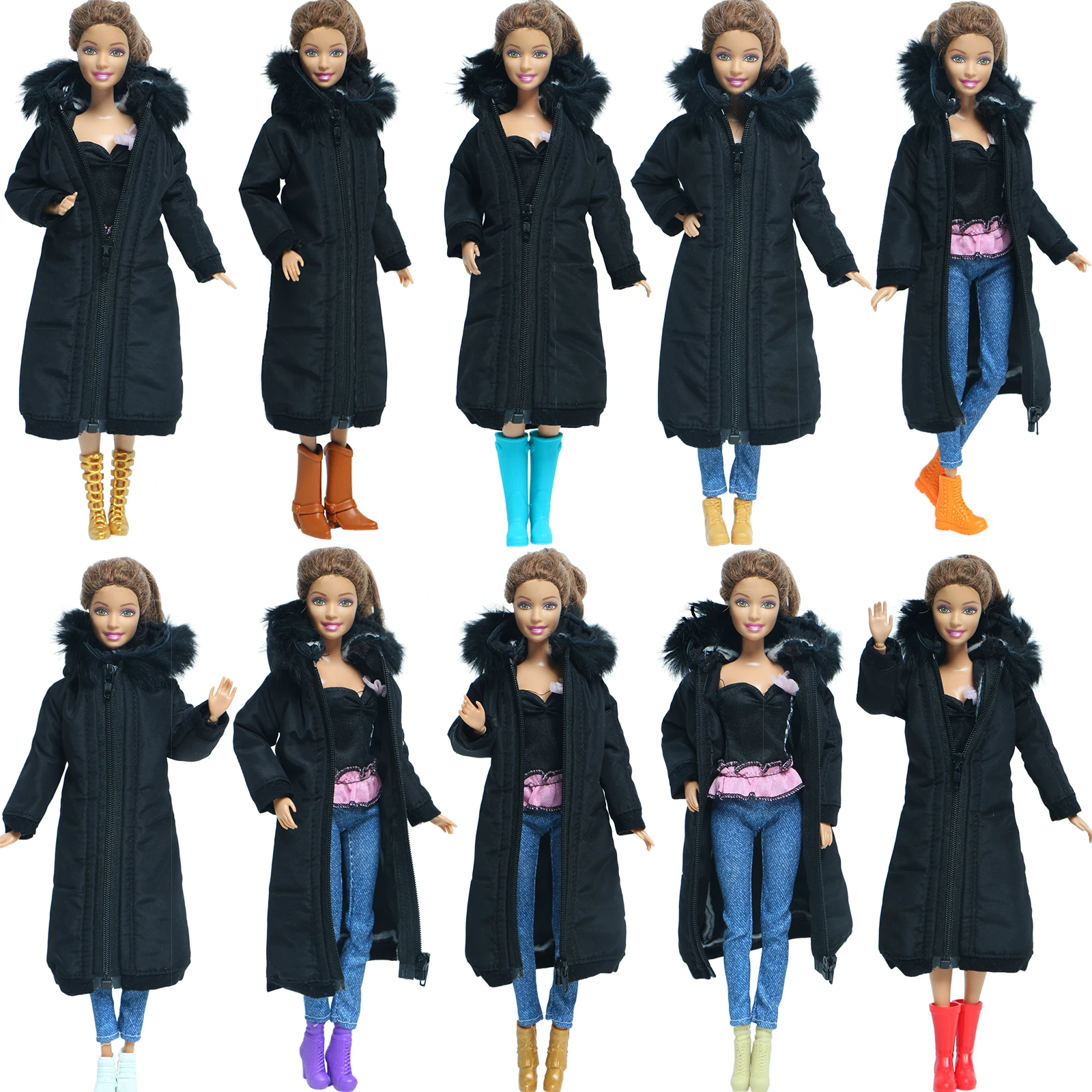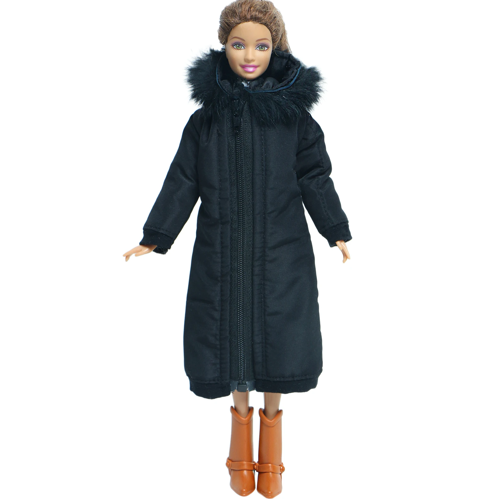 Черное зимнее пальто 2 шт.лот, длинное Хлопковое платье, юбка с аксессуарами для обуви, Одежда для куклы Барби, парка, наряды, куртка, детская игрушка