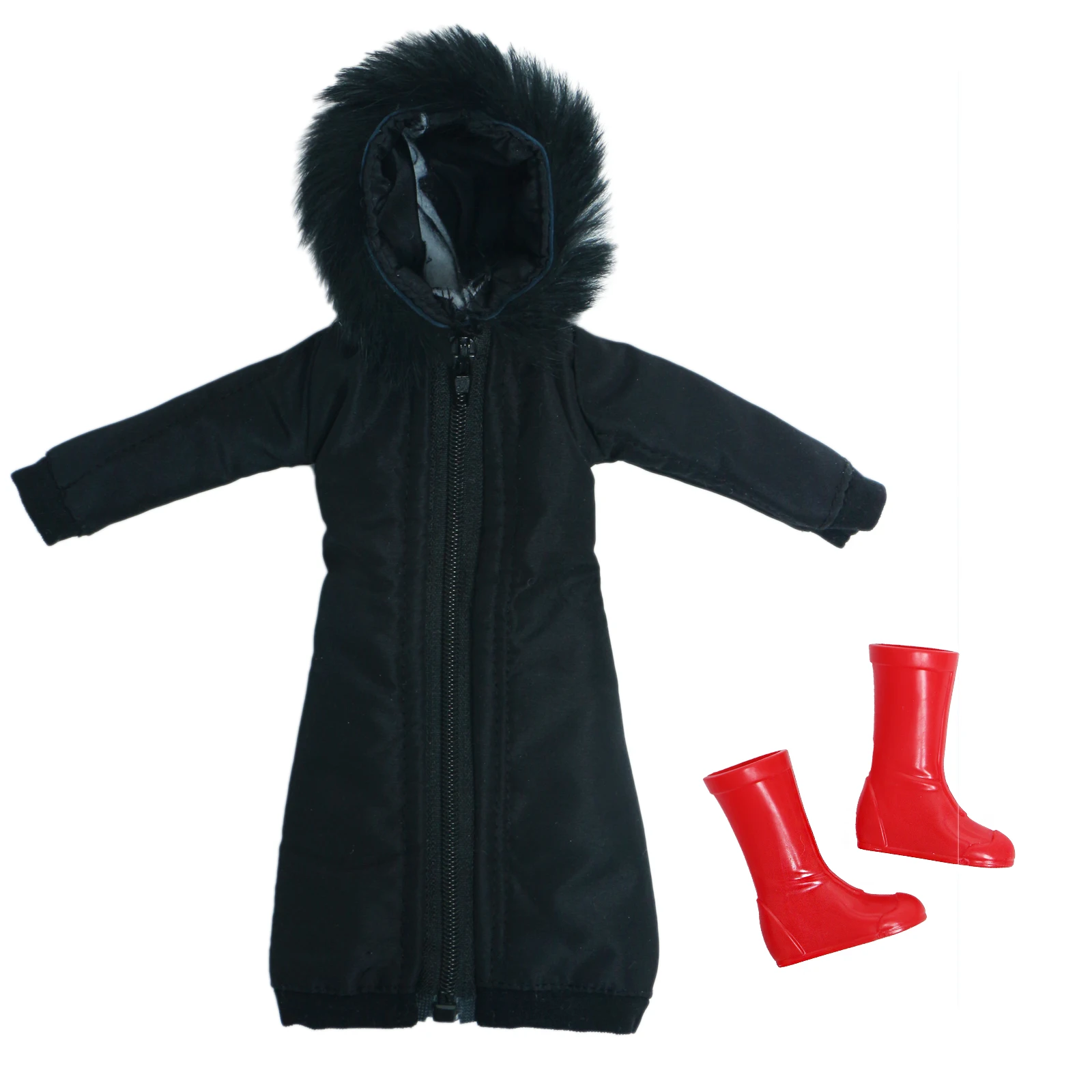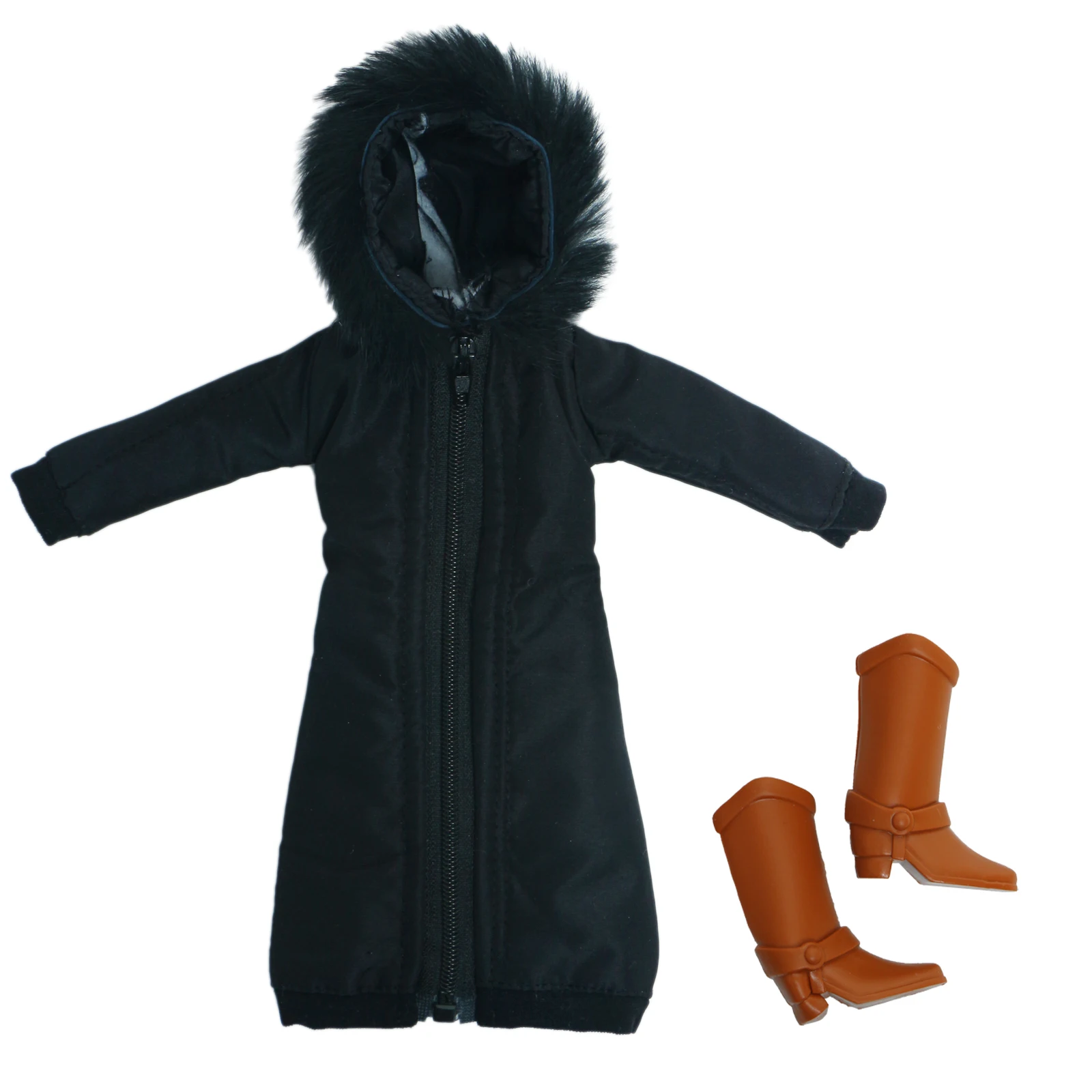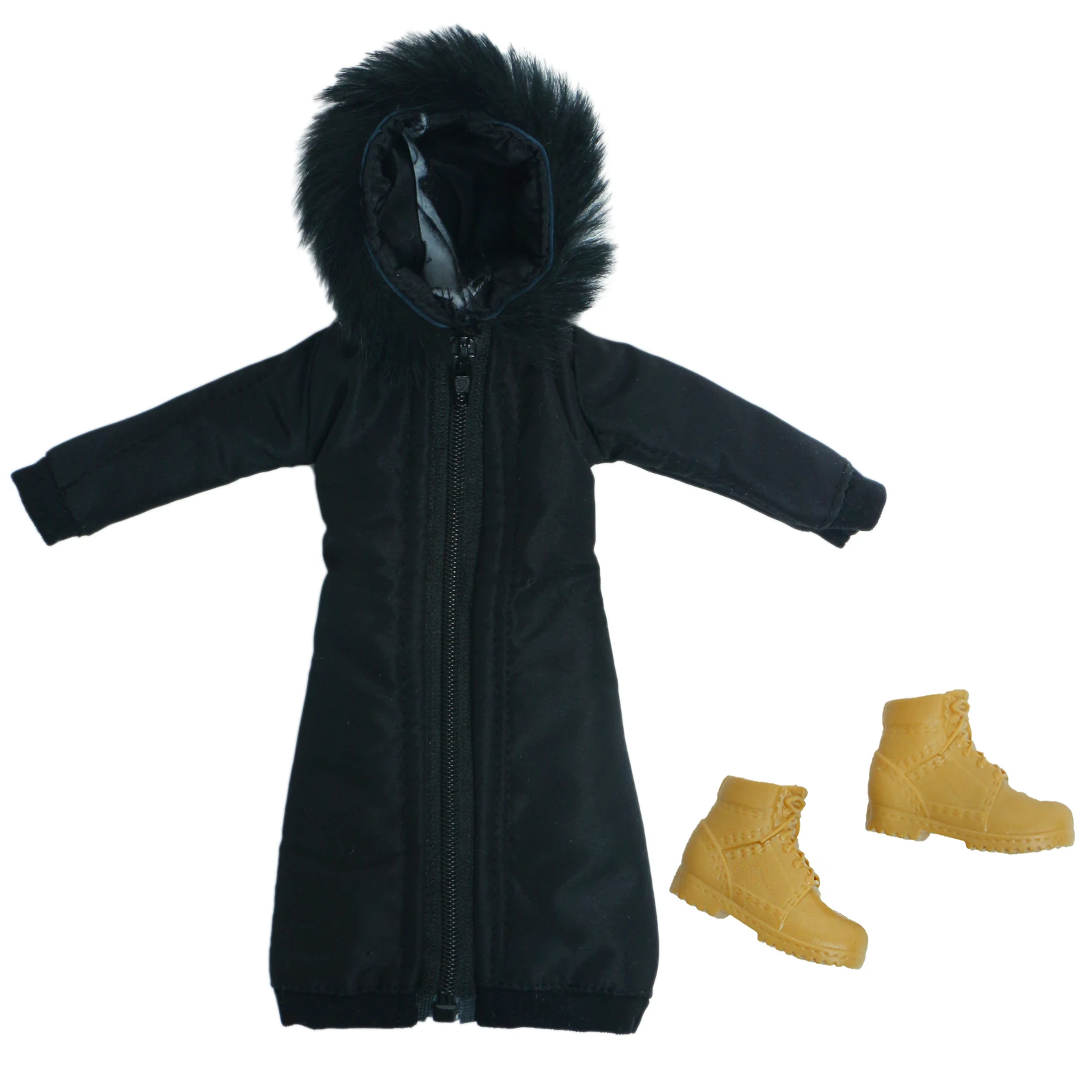 Черное зимнее пальто 2 шт.лот, длинное Хлопковое платье, юбка с аксессуарами для обуви, Одежда для куклы Барби, парка, наряды, куртка, детская игрушка