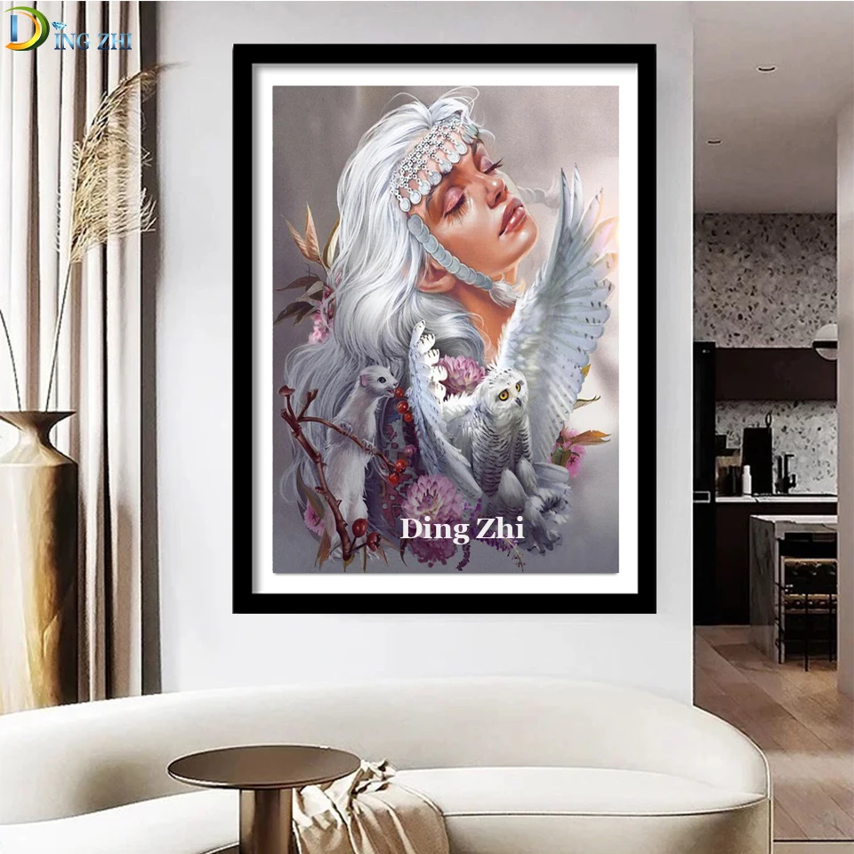 5D алмазная живопись, Сова, красота, сделай сам, вышивка крестиком, рукоделие, алмазная вышивка с белыми волосами для девочек, домашний декор ручной работы, Подарочная мозаика
