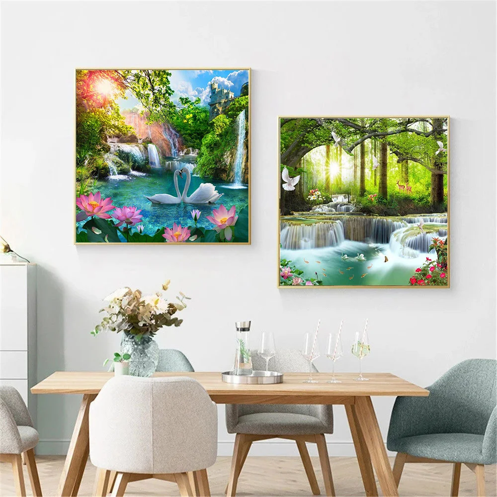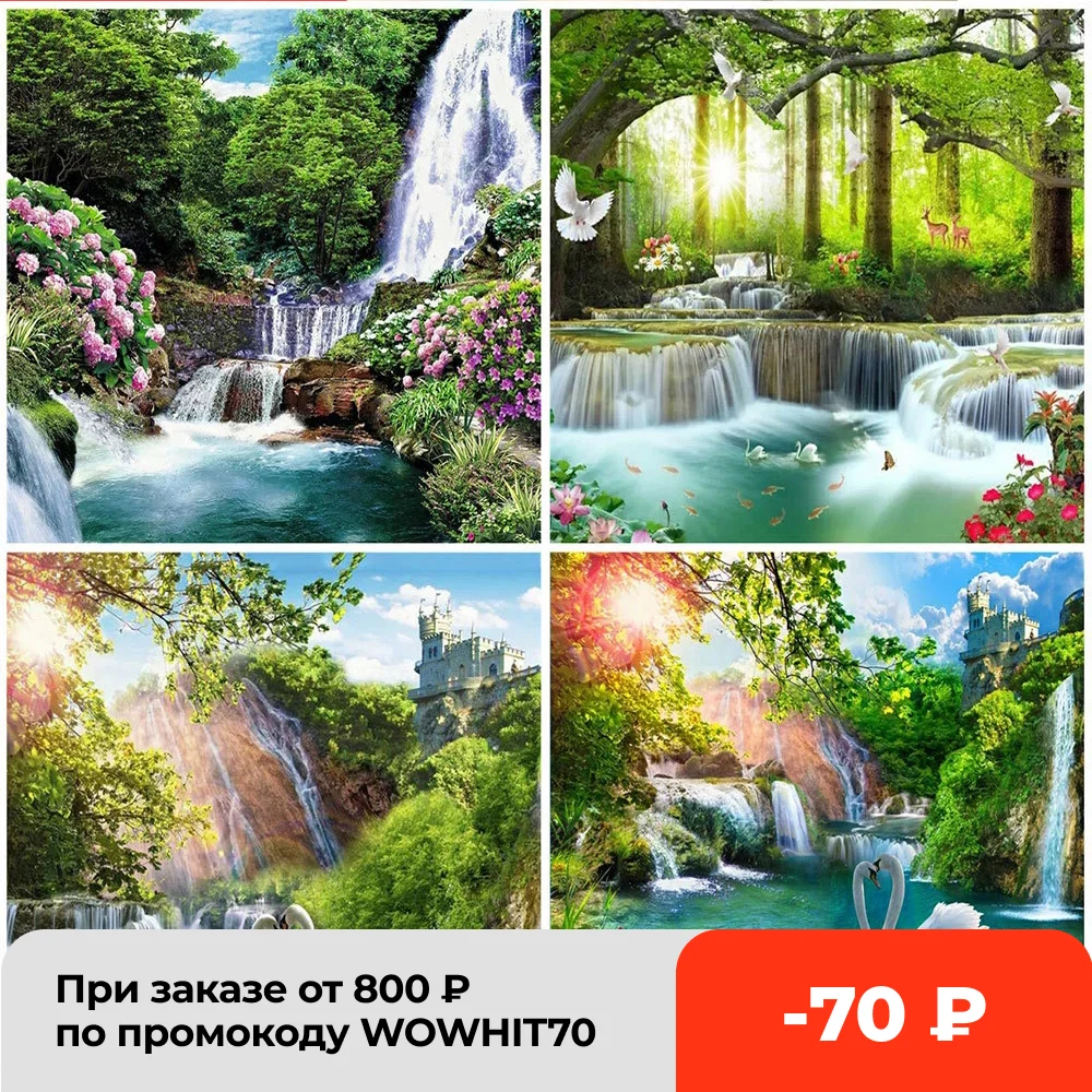 офисный магазин huacan 5D алмазная мозаика водопад пейзаж алмазная вышивка полная лебеди вышивка крестом наборы декор для дома