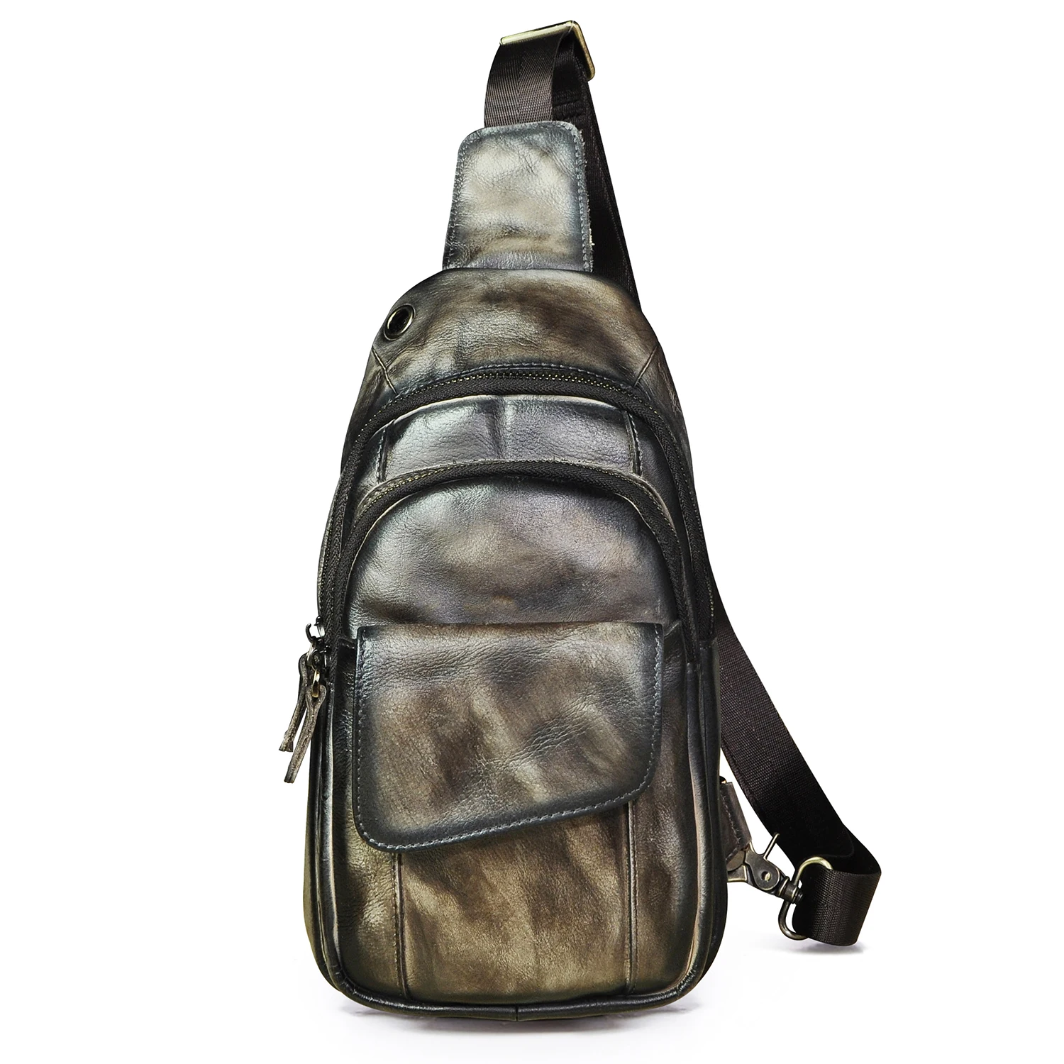 Роскошная треугольная Мужская сумка из натуральной кожи, винтажный дорожный нагрудной ремень кофейного цвета для планшетного ПК 8 дюймов, дизайнерский рюкзак на одно плечо, 8013