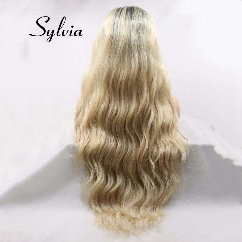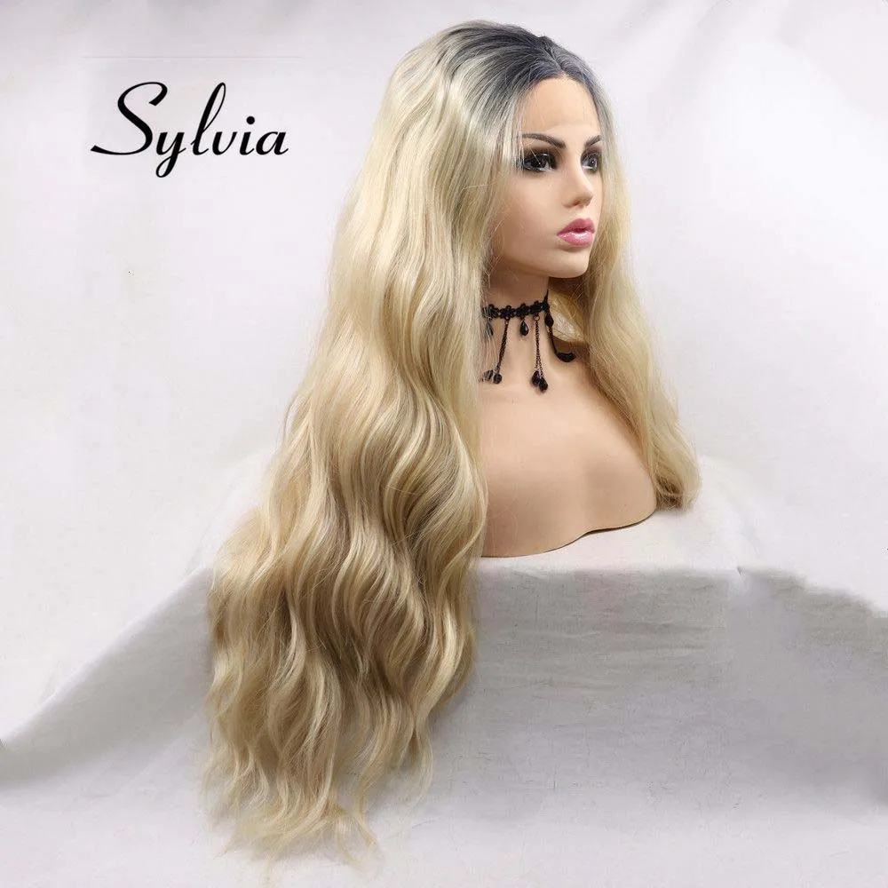 Sylvia свободные волнистые синтетические волосы блондинка Синтетические волосы на кружеве эффектом деграде (переход от темного к парик для Для женщин волосы с се термостойкие волокна длинные волнистые волосы парик