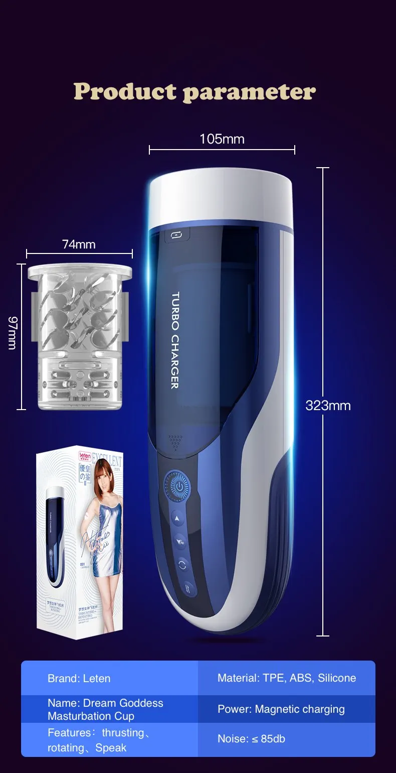 Leten богиня влагалище Автоматическая произношения Телескопический поворотный нажимной поршень Мужской мастурбатор, чашка для мастурбации интимные игрушки для взрослых