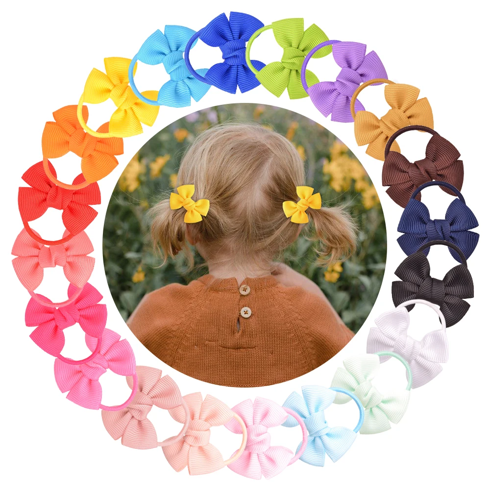 20 шт.лот Детские Разноцветные Мини однотонные бантики для волос милые детские банты для украшения новорожденных эластичные волосы группы детей аксессуары для волос
