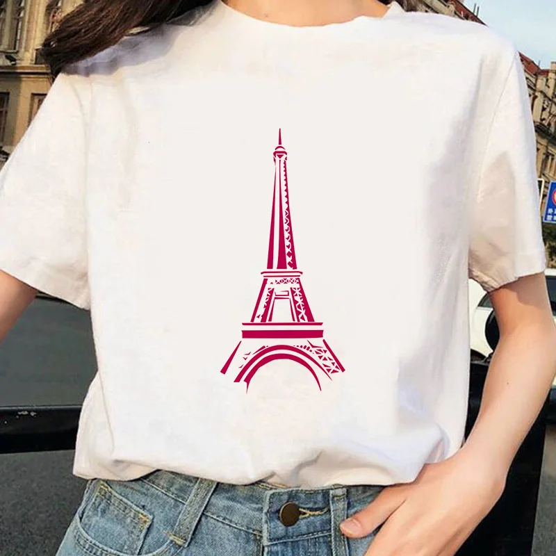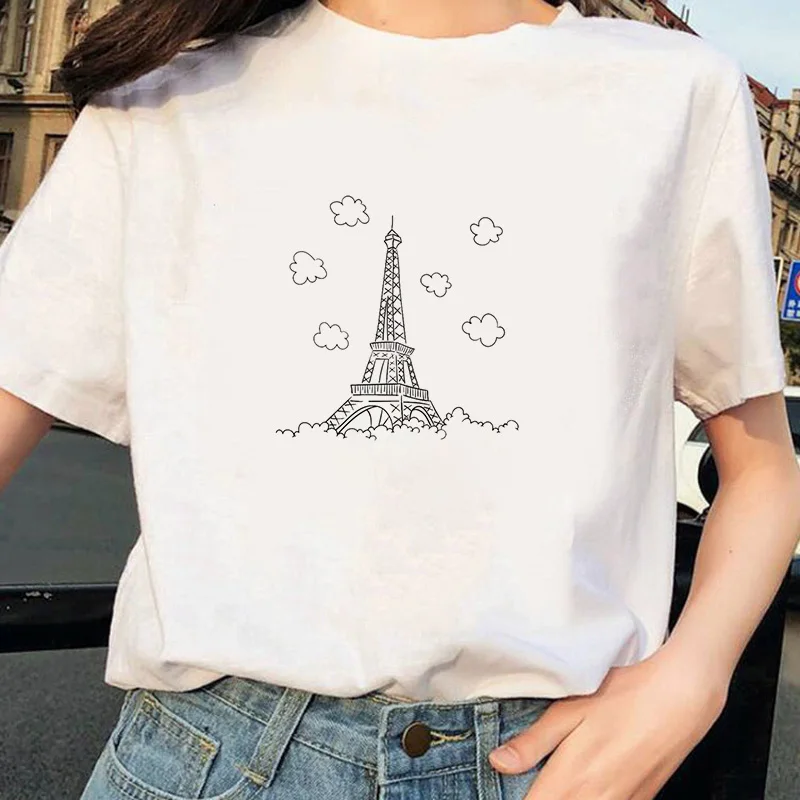Женская белая футболка, женская футболка с принтом Парижа, Эйфелевой башни, женская летняя футболка с круглым вырезом и цветочным принтом бабочек, Винтажная Футболка