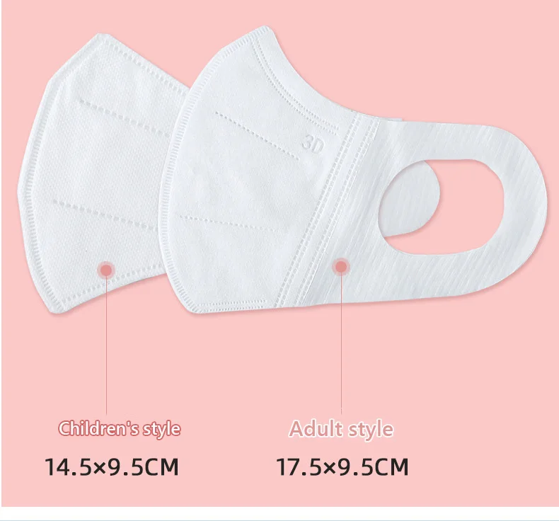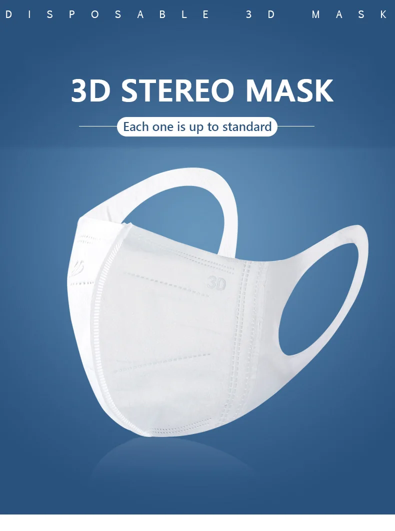 Защитная 3D маска Материал: Нетканая ткань, выдувная ткань из расплава Детский Стиль: 14,5*9,5 см Взрослый Стиль: 17,5*9,5 см Параметры: 10 шт./упак. Использование продукта: В основном используется для защиты дыхательных путей, может фильтровать частицы в воздухе, капель барьера, пыльцу и т. д. он используется для семейного здравоохранения. Особенности маски: 1. Пластиковый мост бар, барьерное оружие, изысканный шпон, массивное загрязнение 2.Отборный Высококачественный ремень с ушками, прочная прочность, удобно носить 3.Ультразвуковая технология шитья, плотный пустой держатель 4. Внутренняя сторона из мягкого нетканого материала, приятная для кожи, низкая чувствительность и отсутствие стимуляции Метод хранения: Рекомендуется хранить в сухом, вентилируемом, некоррозионном газе, избегать прямых солнечных лучей и держаться подальше от источников огня или легковоспламеняющихся материалов