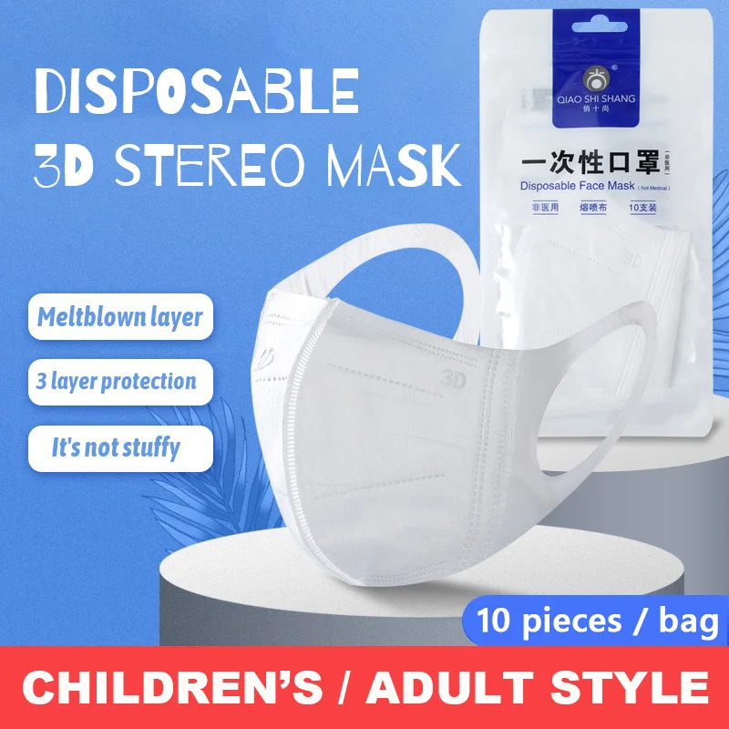 10 шт. одноразовая 3d Защитная маска для лица для взрослыхдетей тонкая дышащая трехслойная маска с расплавленной тканью Пылезащитная Маска Тушь для ресниц